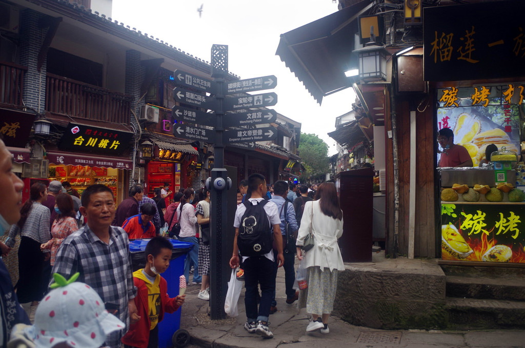 重庆另一个网红景点是洪崖洞。这里原本是嘉陵江边一处乱石崖,据说是一位颇俱眼力的女金主看中了这个地方要去开发。市领导本着半信半疑的心,将地批给了她。刚开发时,不怎么景气,后来采用复古和抓住年轻人的胃的办法,在这里修了许多上下错综复杂的古典式小楼,招来了众多美食小商贩,就一下子火了起来,并传遍全国。今天,凡是到重庆的外地游客,几乎都要到这里逛一逛,品一品美食。