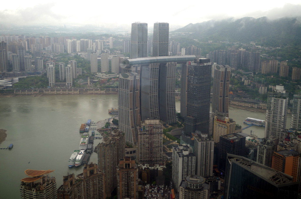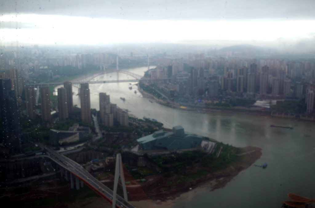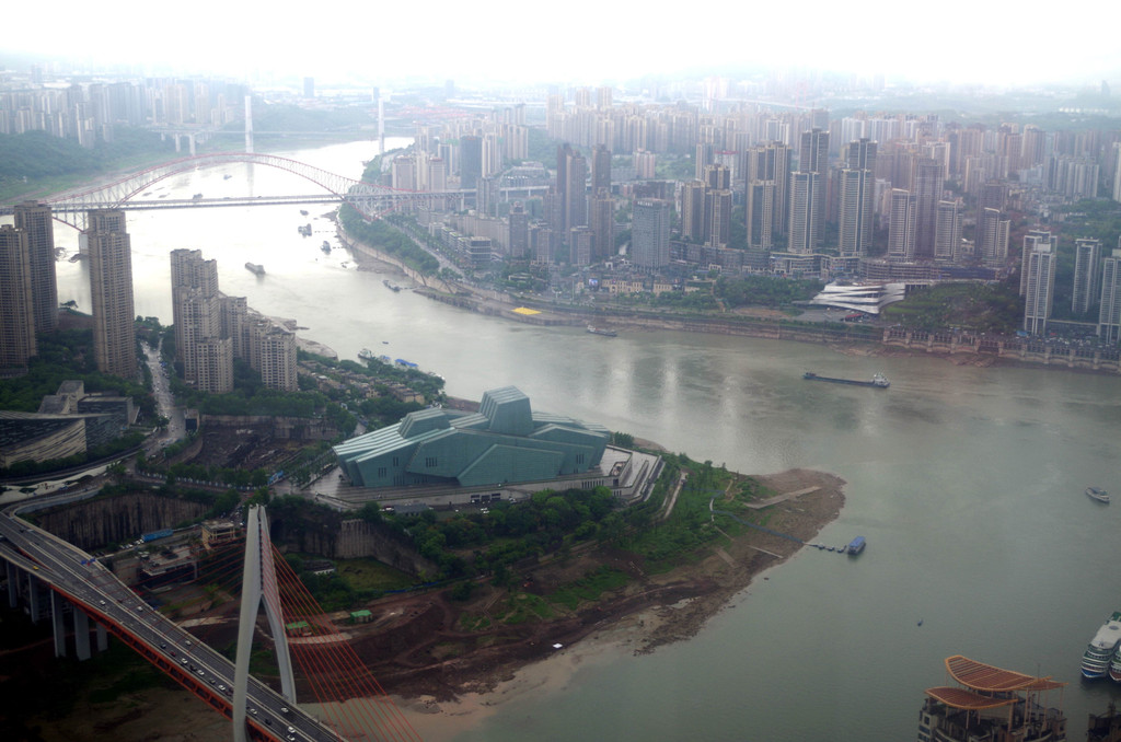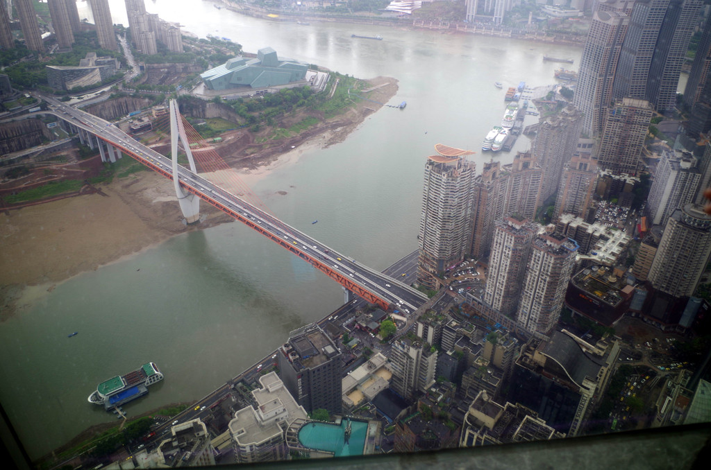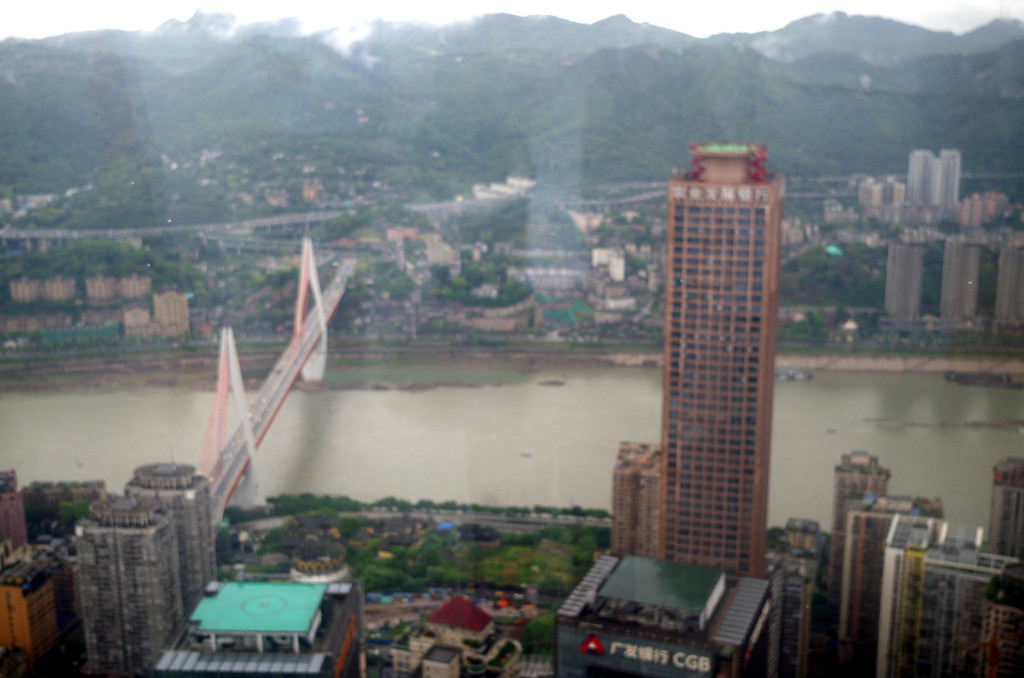 我曾经登过两处高楼看城内景色。一个是台湾台北的101大楼,一个是美国纽约曼哈顿911后重修的双子塔的一号楼看曼哈顿全景。重庆会仙楼上看上去,只能比那两个视觉冲击更强烈。两江汇流,三岸高楼林立,展现着重庆新的魅力。