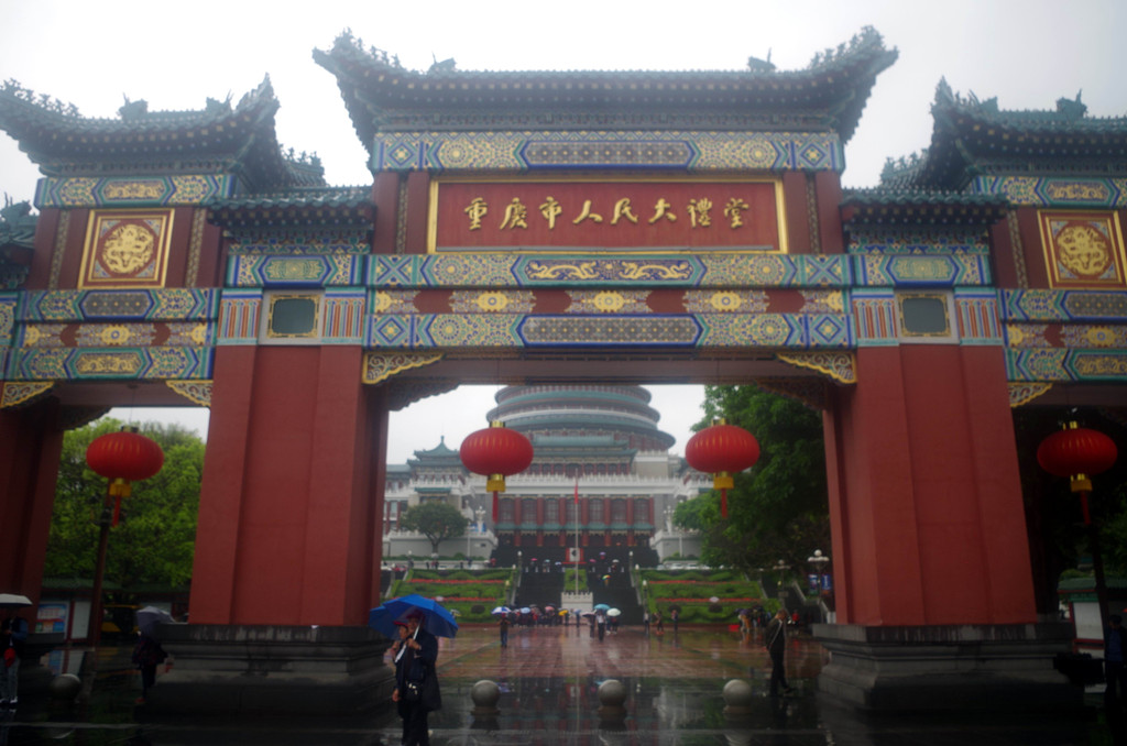 还有一处仿古建筑,就是重庆人民大礼堂了。她采用北京天坛的样式建造,也迎来不少人的参观。