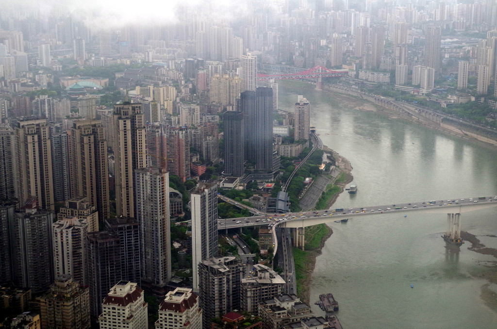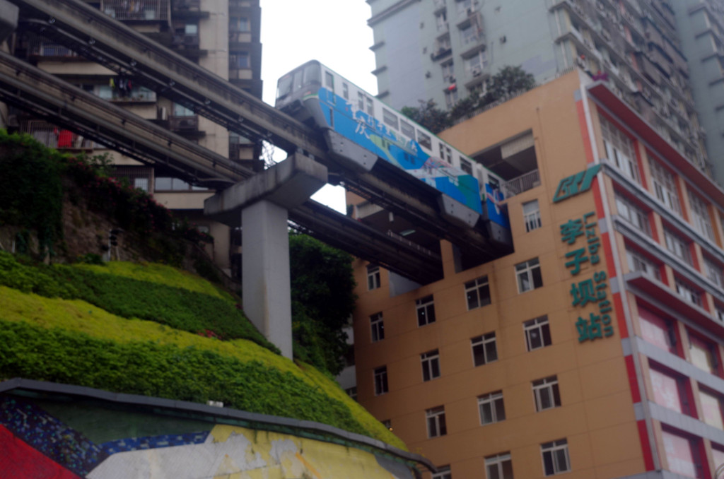 由于山高又陡,楼群又密,交通与楼争地,于是,重庆就出现了一个网红景点——轻轨穿楼。据说,这里没修轻轨时,房地产开发了,开发商也开始施工修到了三楼,恰在这时,新修的轻轨要经过这里,而这里,正是嘉陵江岸最窄的地方,于是,政府下令,开发商舍出两层楼来,在楼中间建轻轨车站——李子坝站。而事先预卖出去的两层楼的居民,政府给了高额补贴,到别处去买房。