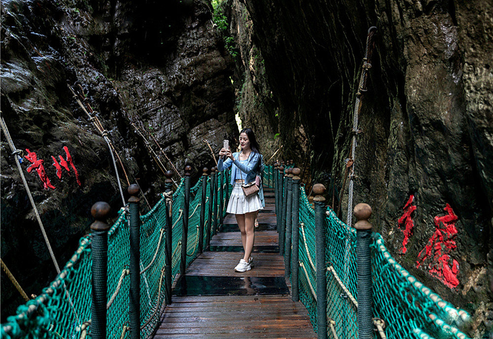 天生丽质的原始森林黑山谷位于万盛黑山镇,全长13公里。峡高谷深,一边是重庆,一边是贵州。