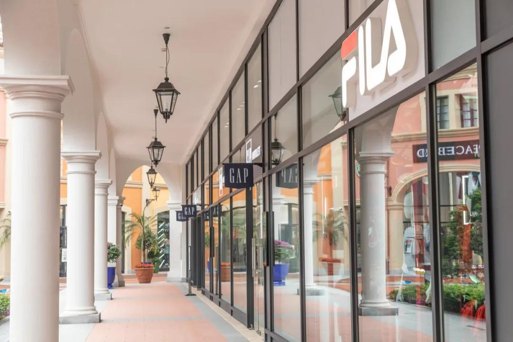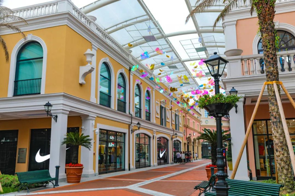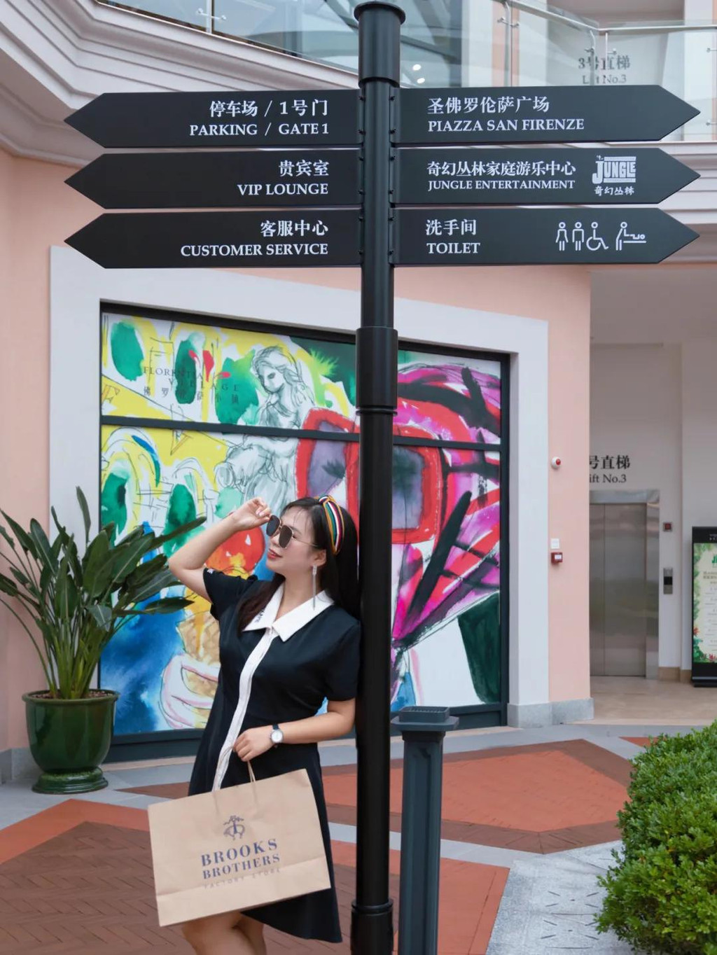 穿过大门就是小镇的商业街,小镇面积不算很大,逛2圈就能基本熟悉布局分区,只是入驻的潮牌名品有点多,我逛了几圈也没办法全部记住!