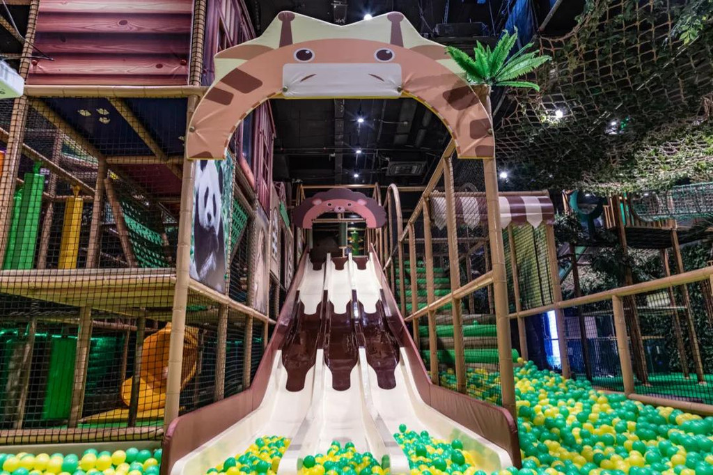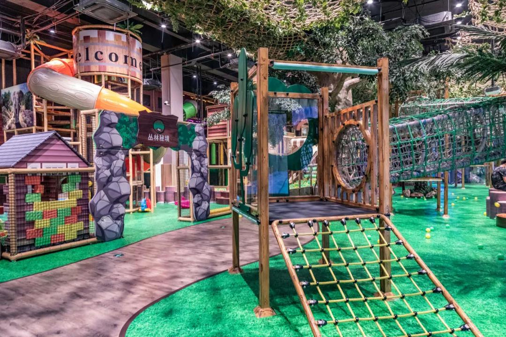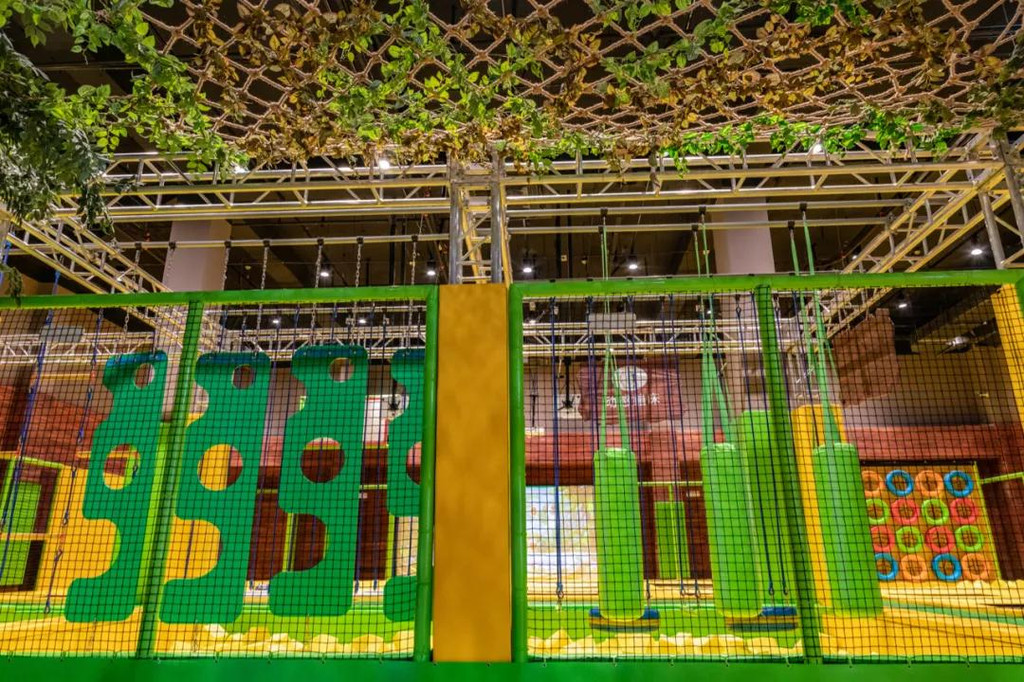 二楼还有不得不说的一个地方,那就是奇幻丛林家庭游乐中心。奇幻丛林占地2000平,拥有6米挑高的场馆,馆内别具匠心地运用了棕榈、竹子、原木等自然元素,呈现了以“丛林探险”为主题的综合家庭游乐中心!