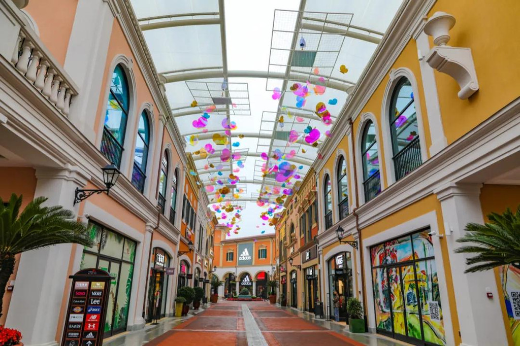 漫步其中就有一种穿越到意大利街头的感觉,周围的一切浪漫而清新。长廊上高高挂起的蝴蝶,风吹过碰撞出清脆的叮铃声,色彩斑斓的小镇、苏醒的少女心,一场意式风情之旅就此拉开帷幕~