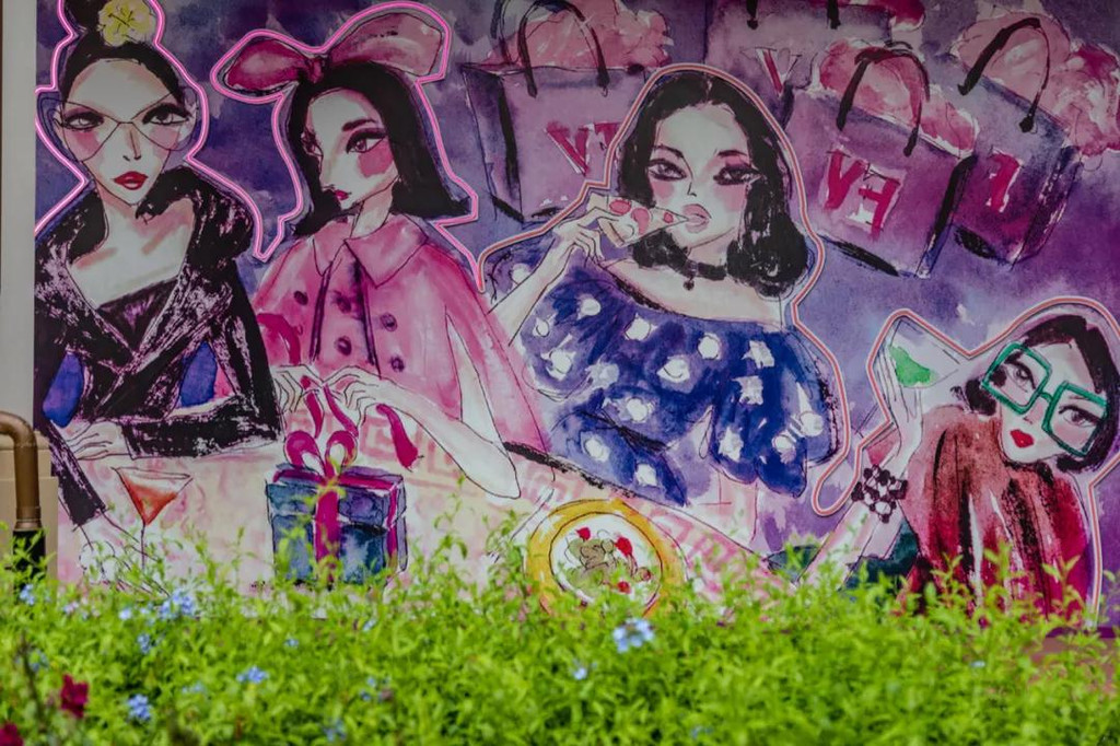 除了这些,还有一处处的涂鸦漫画墙,浓郁的配色、夸张的标签、时尚的装点,让这里处处都有景可寻,或可爱或优雅,什么风格都能找到对应的场景!