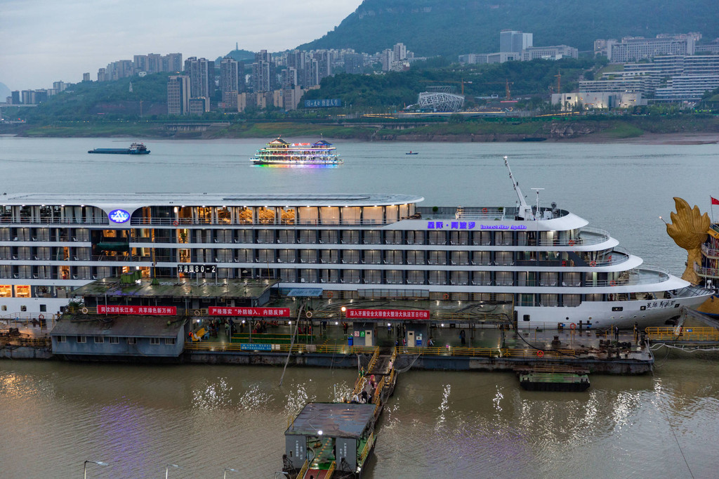 云梯接垂直于长江,也被称为“世界唯一与等高线垂直的街”,街道全长1.2km,其间店铺客栈林立,犹如长江与天际间的一处驿站,沟通着江天两道。