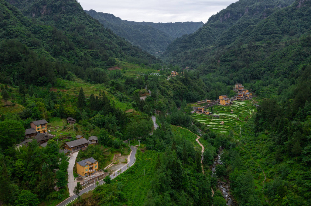 中益乡虽说是重庆市18个深度贫困乡镇之一,但周边旅游景区景点较为密集,且各有千秋,更有保存完好的土家风貌传统民居院落,资源非常丰富,还背靠4A级景区“大风堡”,也是一个特有的旅游之地。其中林木覆盖率达88%,这数据大概就是说在这与身处森林别无二致了吧,幽然和神秘是这的代名词,四处都是蓬勃的生机与自然的馈赠。