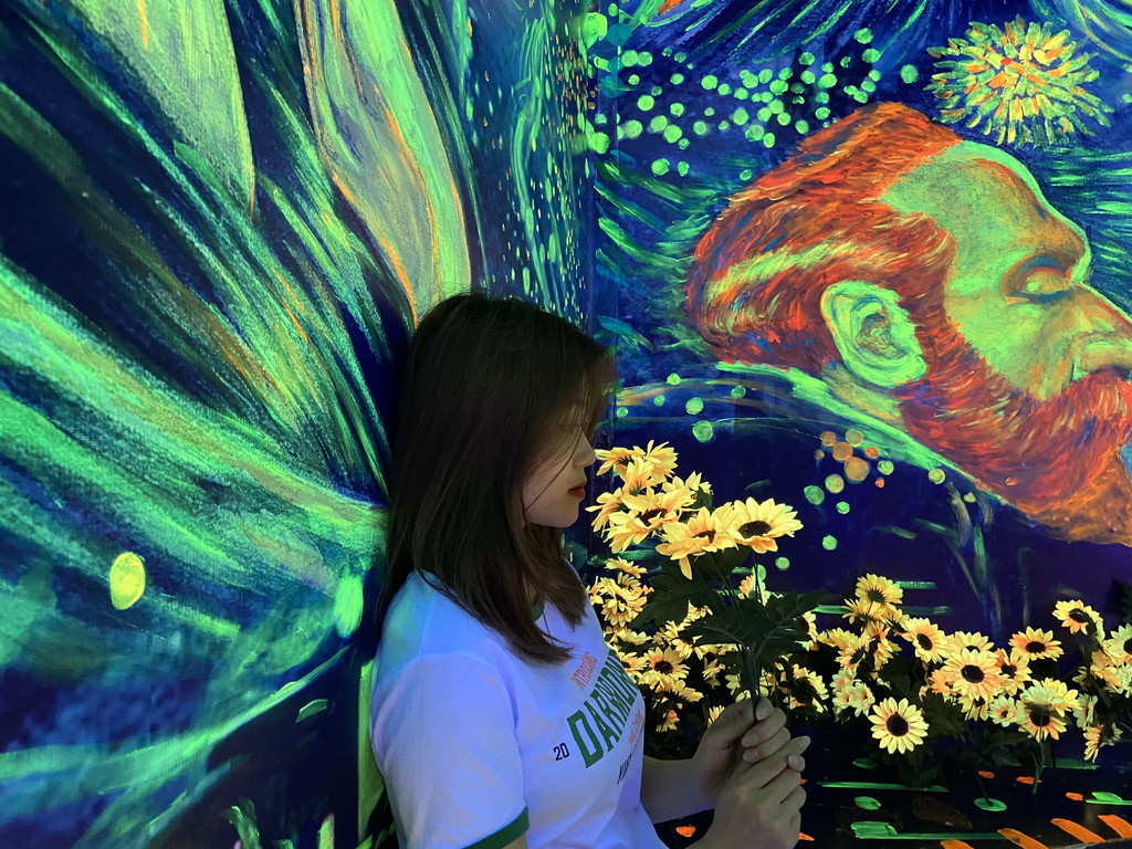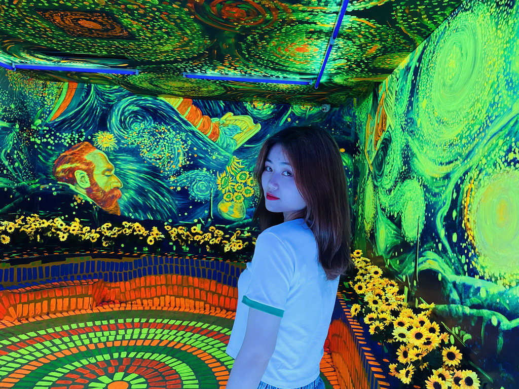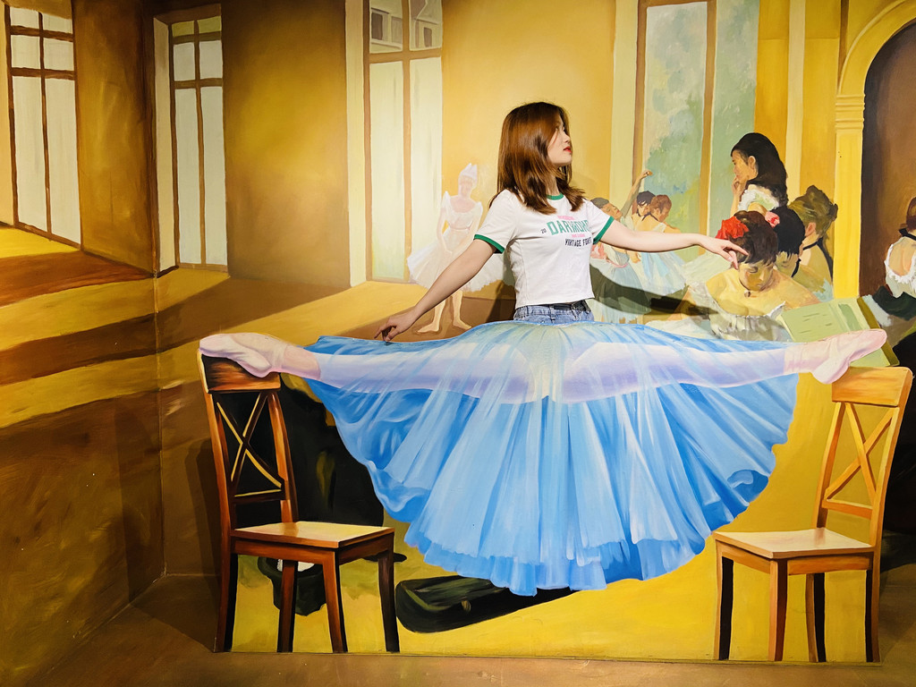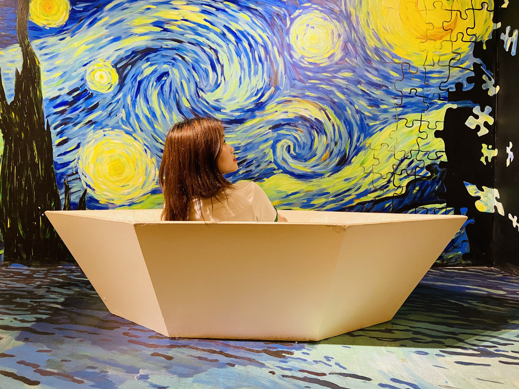 展馆面积约1000平米,利用了镜子、光影特效、空间错觉等科技手段,将世界名画立体化展现出来,变为一个可以触摸的3D炫酷艺术空间。