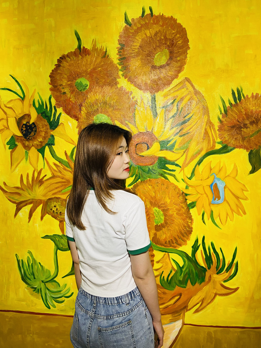 2、从入口进去映入眼帘的是一幅梵高的向日葵,这些简单地插在花瓶里的向日葵,呈现出令人心弦震荡的灿烂辉煌。梵·高以重涂的笔触施色,好似雕塑般在浮雕上拍上一块黏土。黄色和棕色调的色彩以及技法都表现出充满希望和阳光的美丽世界。
