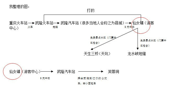 【tips:不要打taxi,因为taxi根本不会带你去汽车站,别看其他人网上写的4元打的到汽车站,扯淡!!司机觉得太近,根本不会搭理你,回来时也一样,所以别浪费时间了,除非你打算直接从武隆火车站到仙女镇,那样才会让你搭乘,人多拼车会便宜一点,人均25元左右。我们是直接从火车站走到汽车站的,原来以为要走好远,其实还好,10分钟】