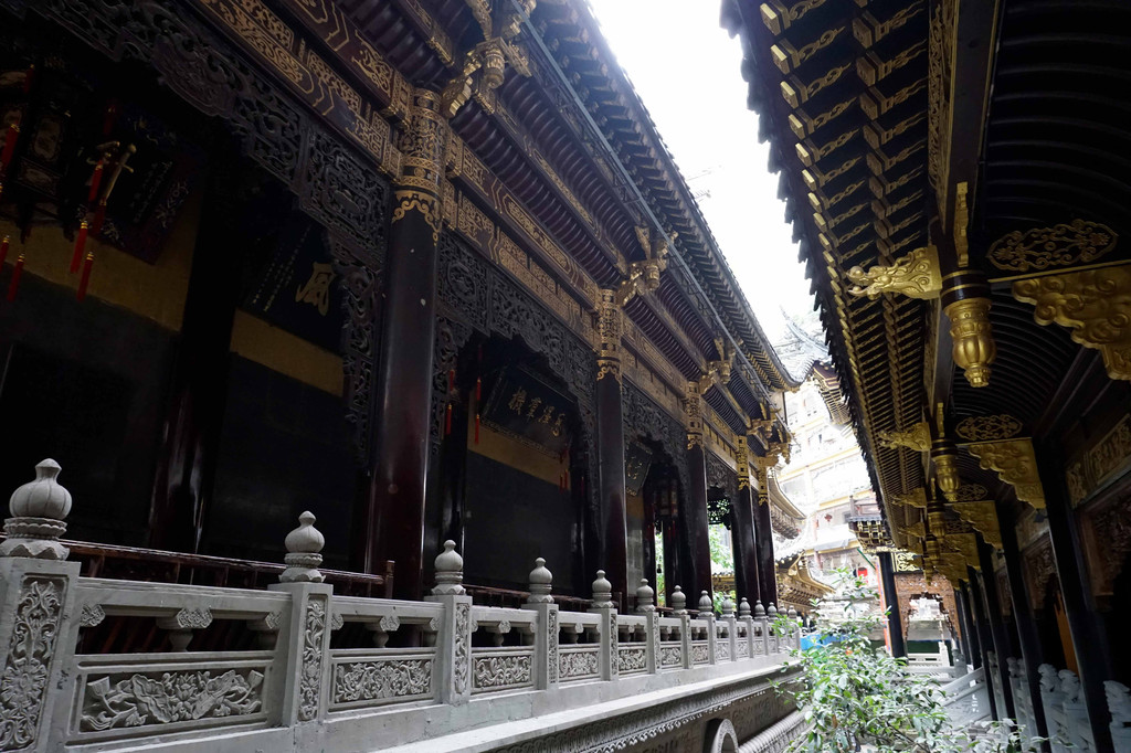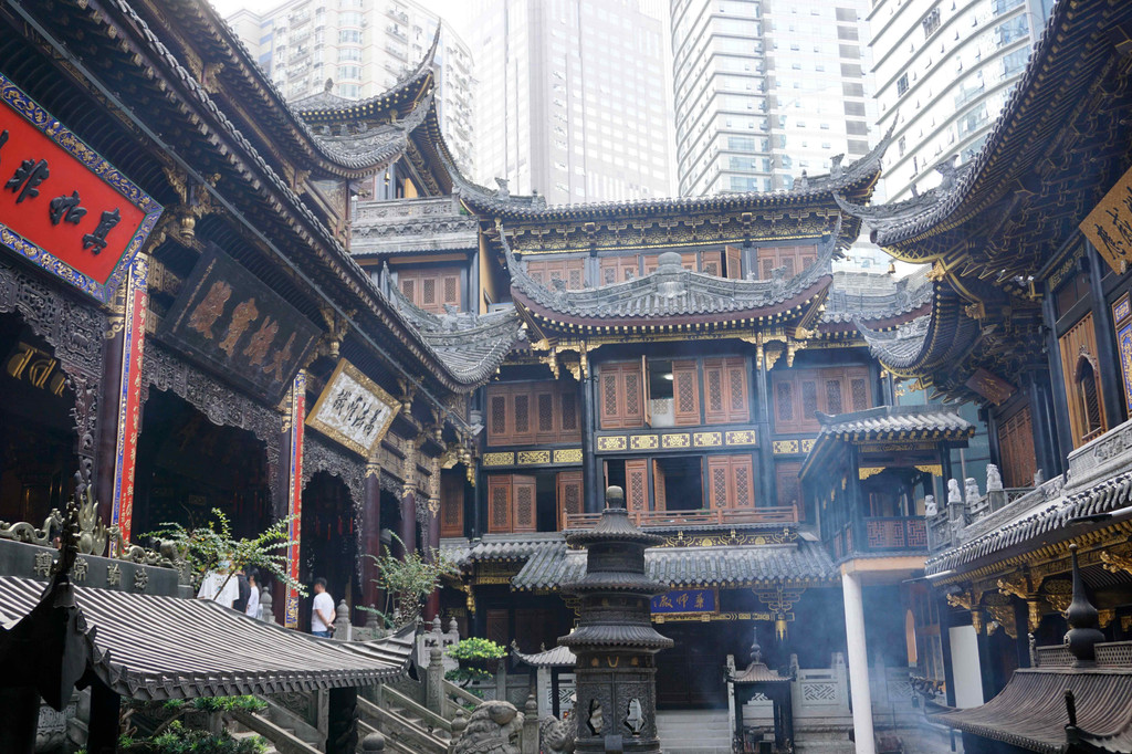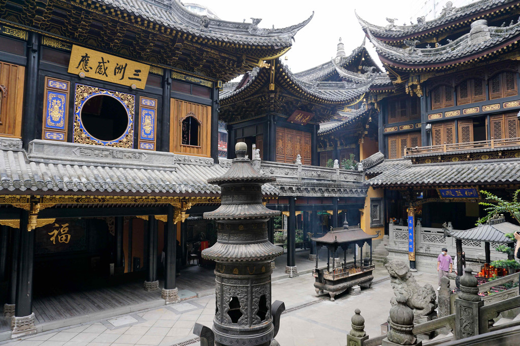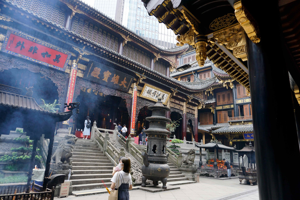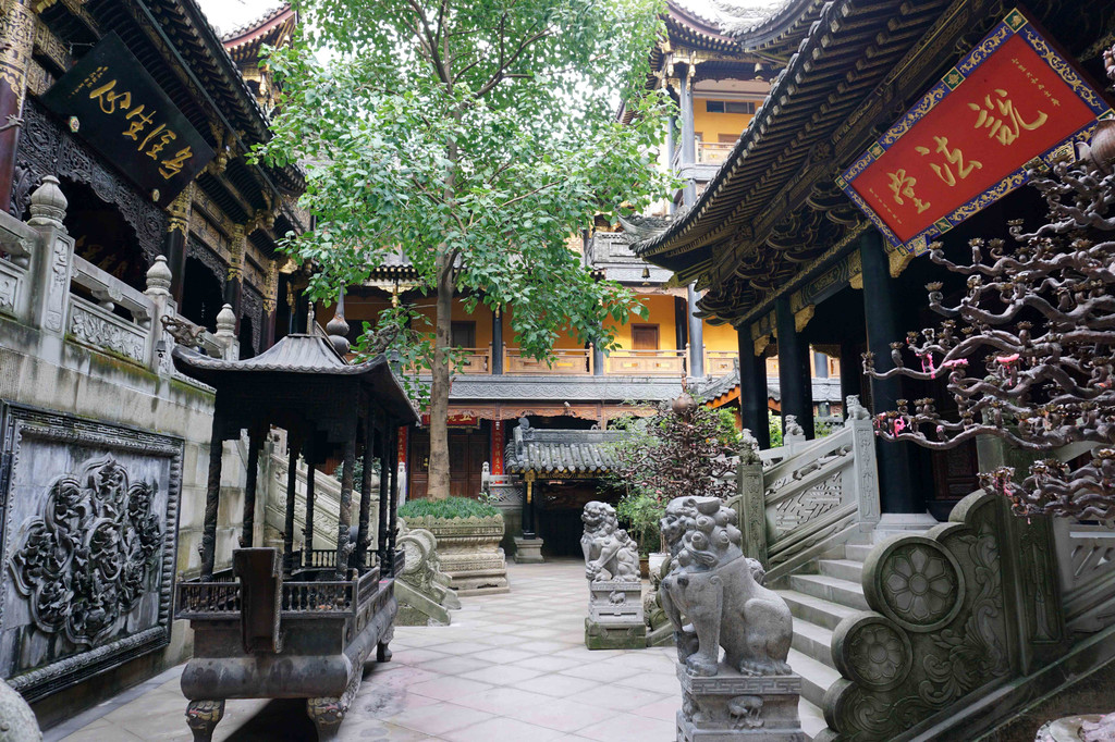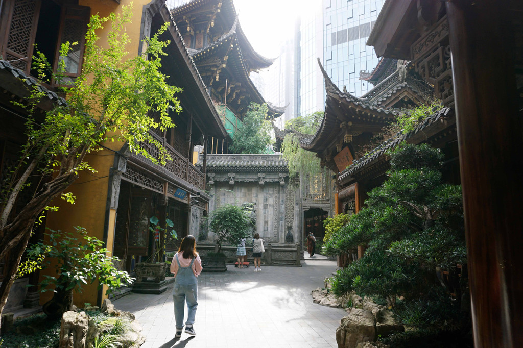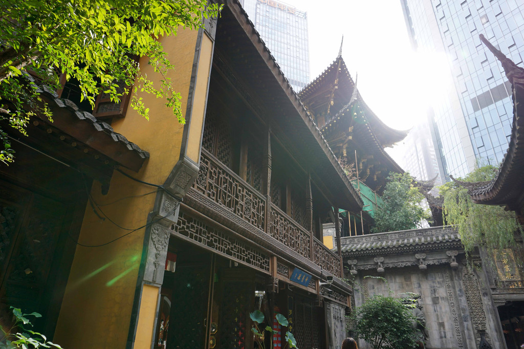 我们两个汇合之后,漫步走到了解放碑附近,正当我们犹豫去哪里玩的时候,一座古寺映入了眼帘,这是罗汉寺,它位于重庆渝中区的闹市中,是一座已有近千年历史的古寺。