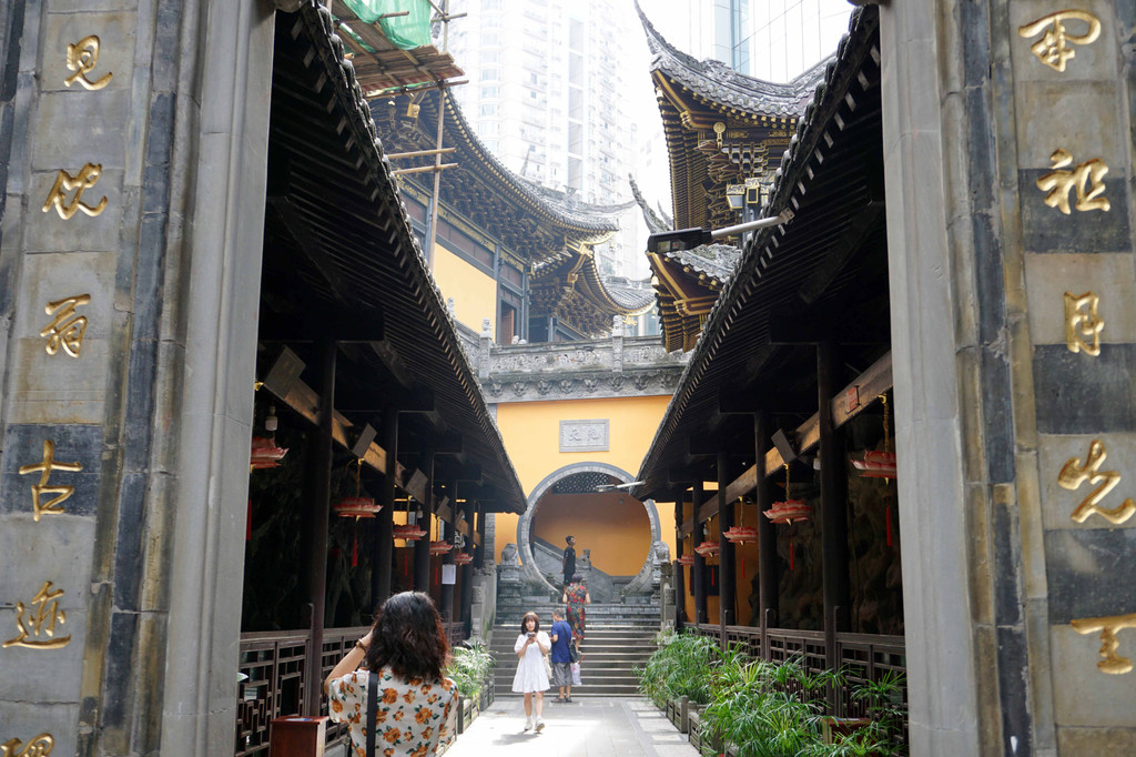 罗汉寺又位于地势较高的地段,所以显得颇为壮观,而如今,重庆的高楼越来越密集,罗汉寺已经被周边的写字楼全方位遮挡,难以从外部一睹其面貌。