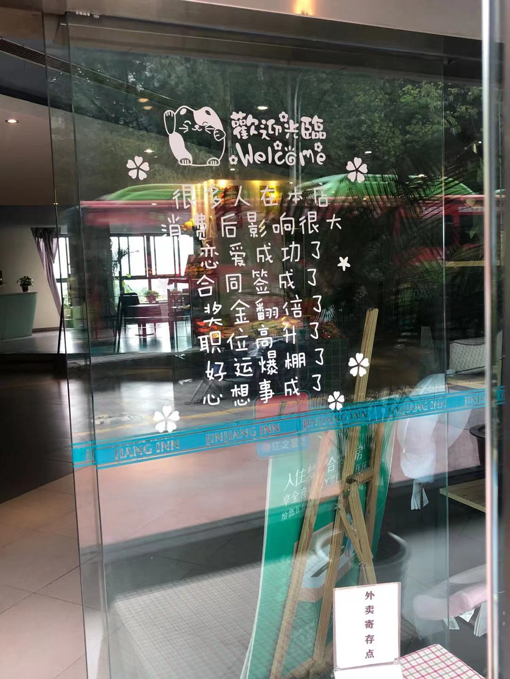 从机场到达酒店已经是下午16:00了,乘坐飞机是比较难熬的。不过步入锦江之星酒店大门就让我很爽快,这口彩不错呀!大家看下图,这简直是要让我转运的节奏呀,事业、爱情双丰收呀,小孩子才做选择,上面说的6项惊喜我全都要!
