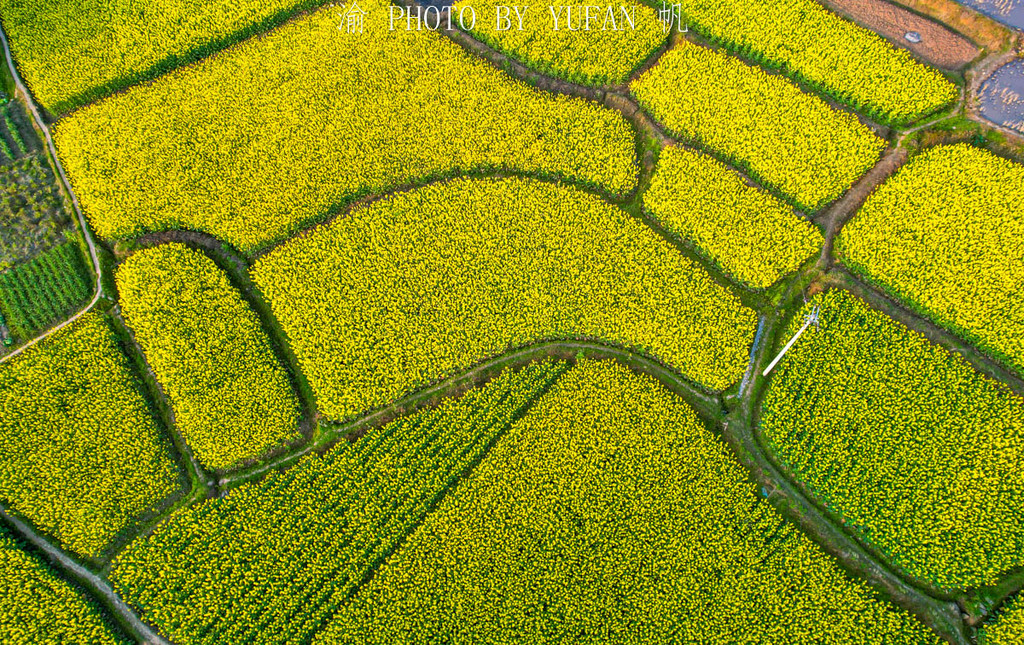 本组图片是前几天渝帆与朋友相约去三块石电站采风之时,升起无人机来拍电站的时候无意中发现的,从图片中可以看到,这里的油菜花规模并不小,目测至少有数千亩,非常漂亮。