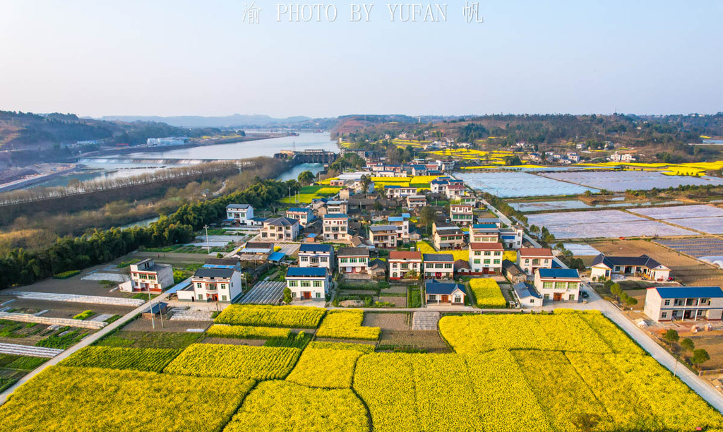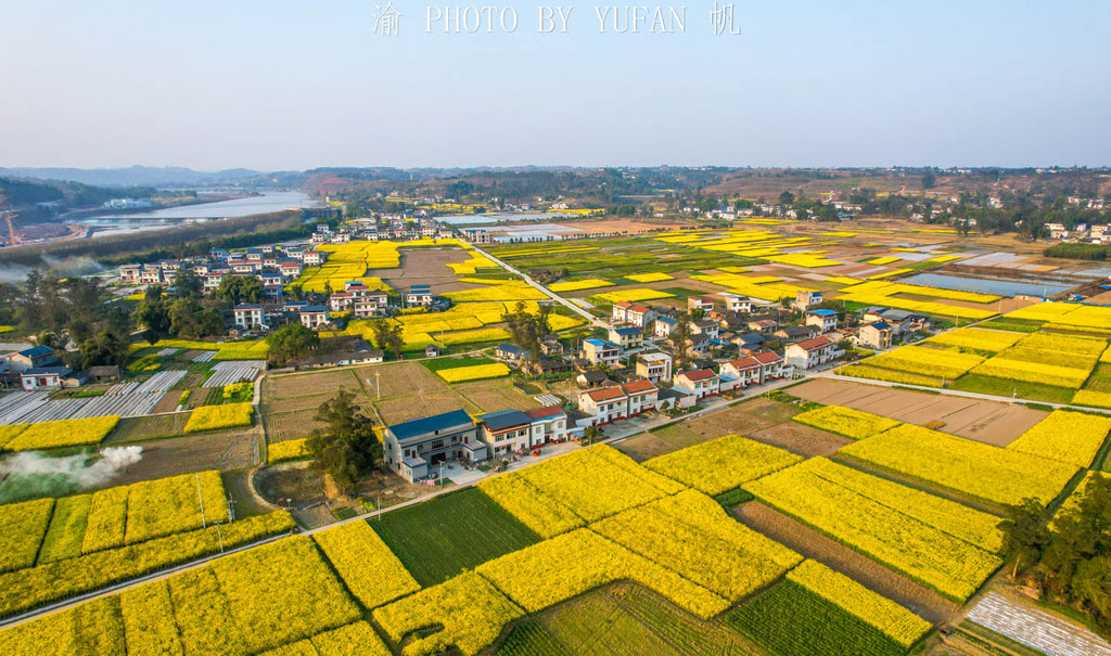 渝帆看到,金色的油菜花仿佛给大地铺上了一层金色的地毯,向着前方不断的延伸,即便是无人机飞出去几公里之外,依然看不到尽头,而边上就是潼南的母亲河、嘉陵江的一级支流涪江,以及有着中国第二大运河之称的潼南运河,水景相比崇龛的琼江有过之而无不及。