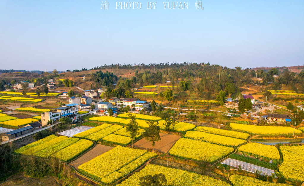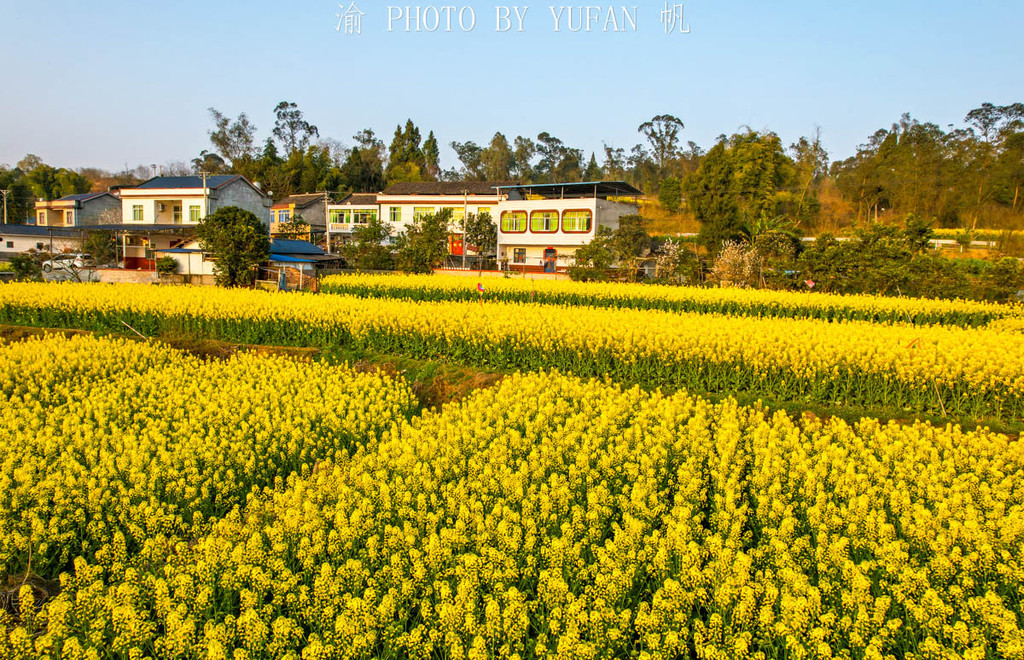 阳春三月,春暖花开,又到了踏青赏花的时节,这时候的重庆乡村,樱桃花、桃花、李花、梨花……百花齐放,五彩缤纷,其中最耀眼非金色的油菜花莫属,当它们大片交织在一起的时候,便成了春日里最为迷人的画卷。