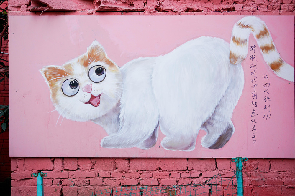 这个小众的拍照打卡地,墙上都喷上了彩绘。往巷子的里面走,你能看到满墙可爱的猫猫狗狗,它们神态各异,每一个都惟妙惟肖的。