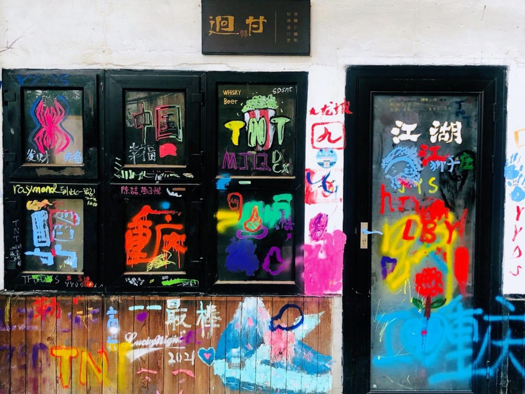 不得不说,重庆的涂鸦真的是渗透到了每一个区域。比如,在这里,就看到了很多漂亮的涂鸦。