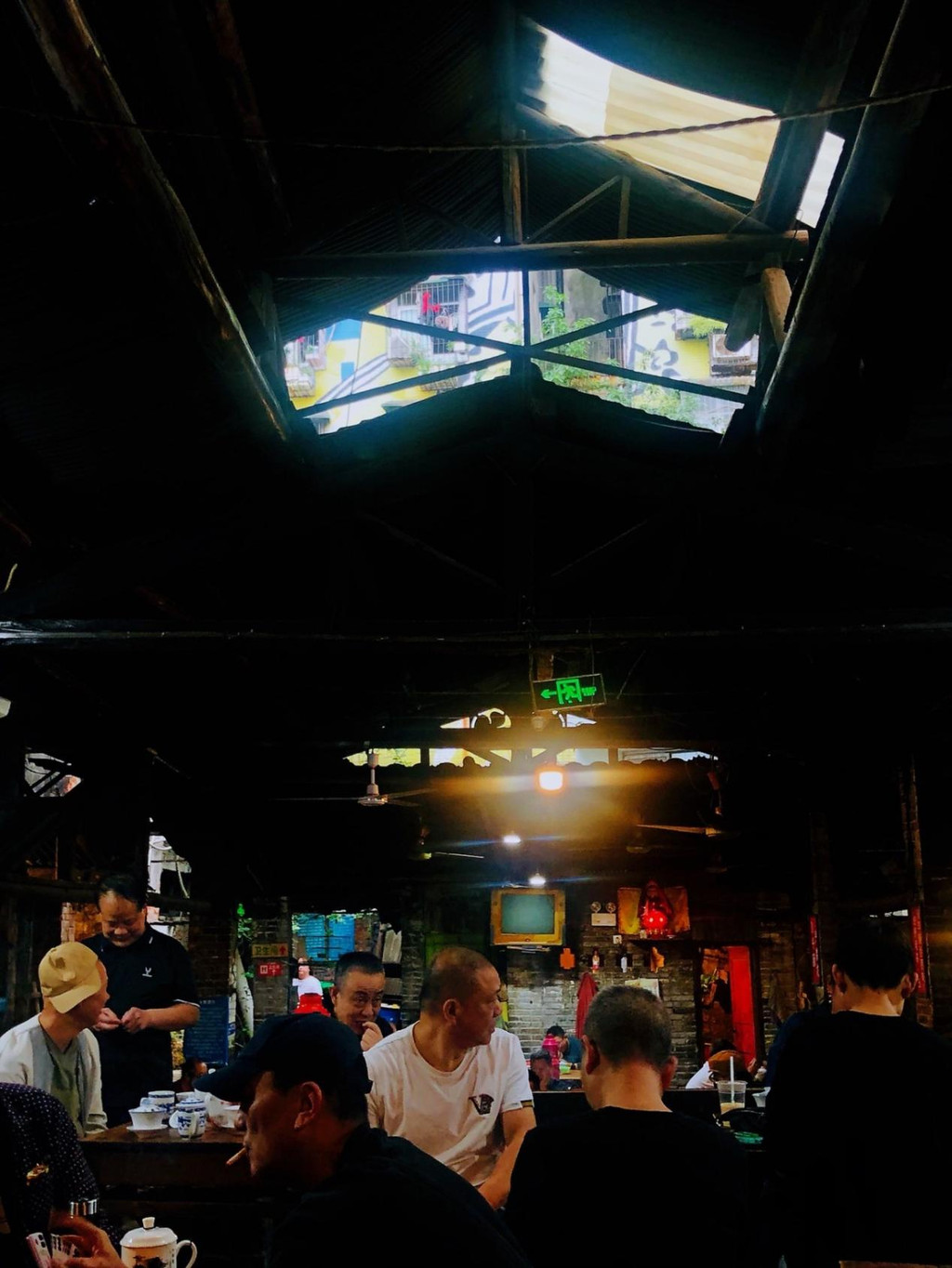 之后,我们去了交通茶馆。这里现在已经成为了超级红火的打卡地。当地人说,每一次来交通茶馆,这里几乎都是爆满的状态。主要是这里真的很便宜,付一次钱之后就可以无限续杯了,哈哈。
