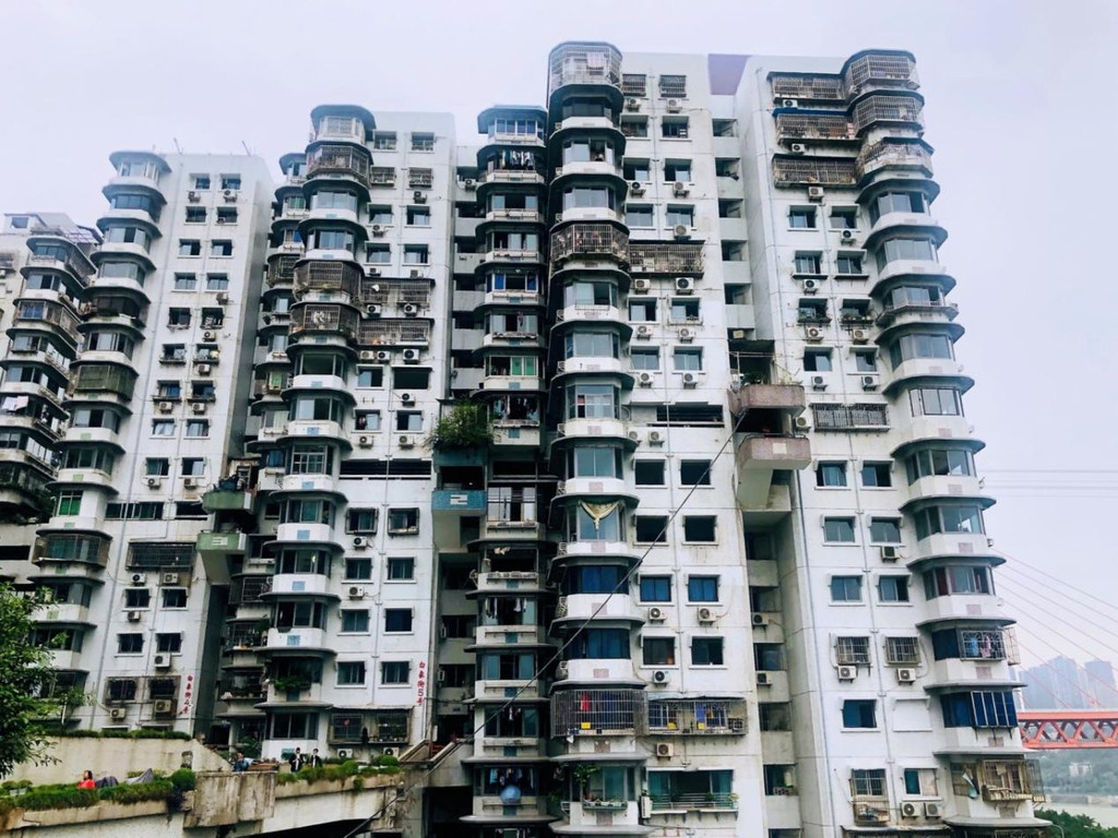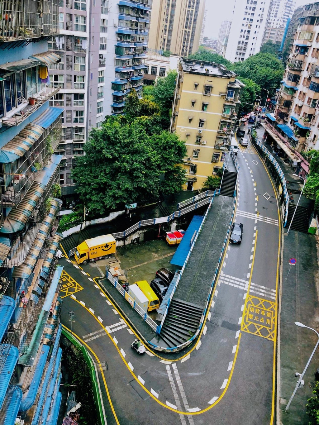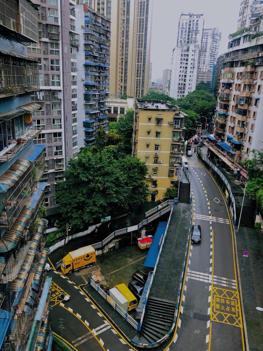 从这里离开,我们接着去了白象居。走到这里的时候,又一次看到了长江。重庆的楼层也很高。因为从某音上面看到过别人下楼的视频,搞得我也很想体验一下重庆下楼时的那种feel。