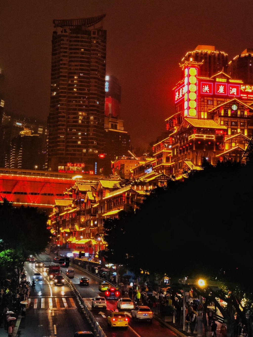同时,这里的景色也极好。除了夜晚的洪崖洞,其实白天的八一路好吃街也很赞。