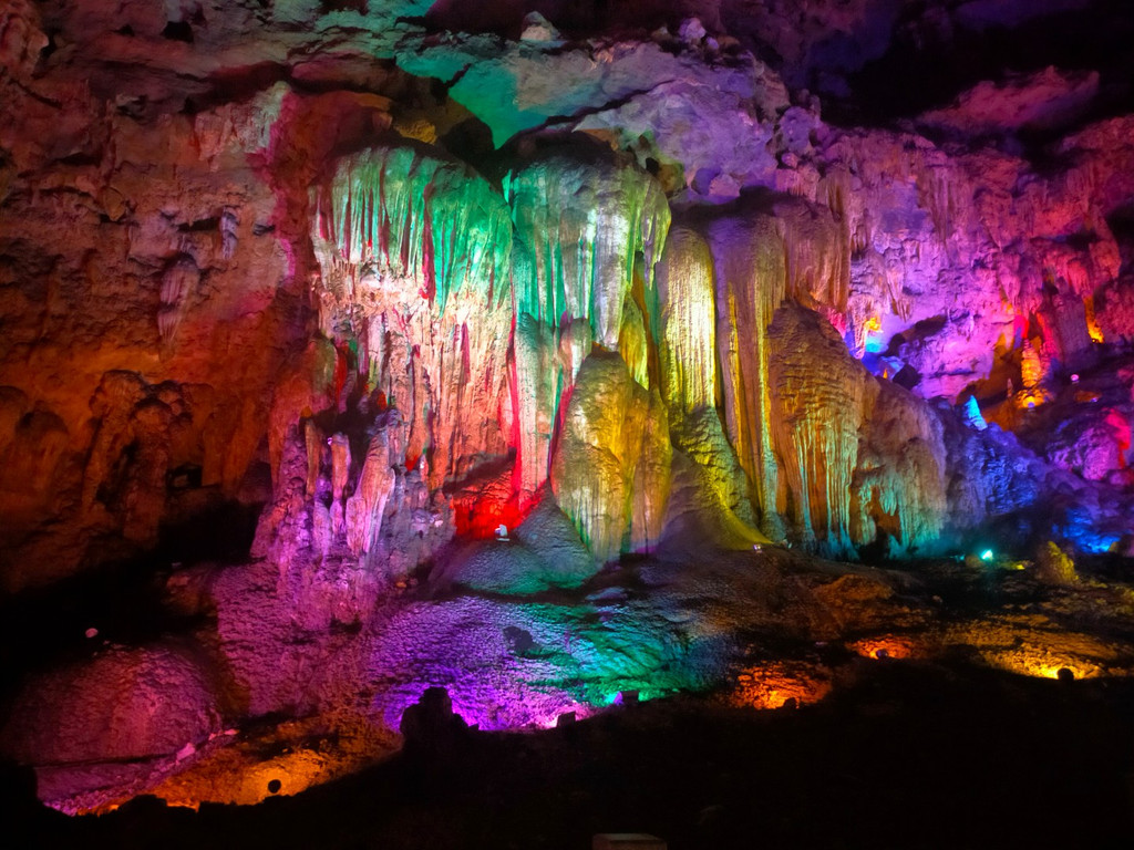 洞穴岩溶景观之大成。走出洞口已经是郊外了,乘坐轨道走到酉州古城.