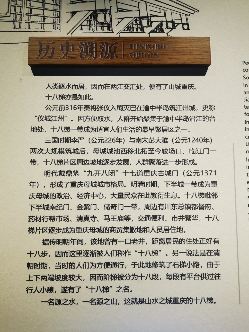 十八梯传统风貌区 — 十八梯的名字起源于明朝,当地一口井距离居民住处正好是十八步石梯,当地人称其为“十八梯”,这座十八梯连接着重庆上下半城两个风格迥异的生活空间。这些独特的坡道和建筑形态是当地人生活的见证。