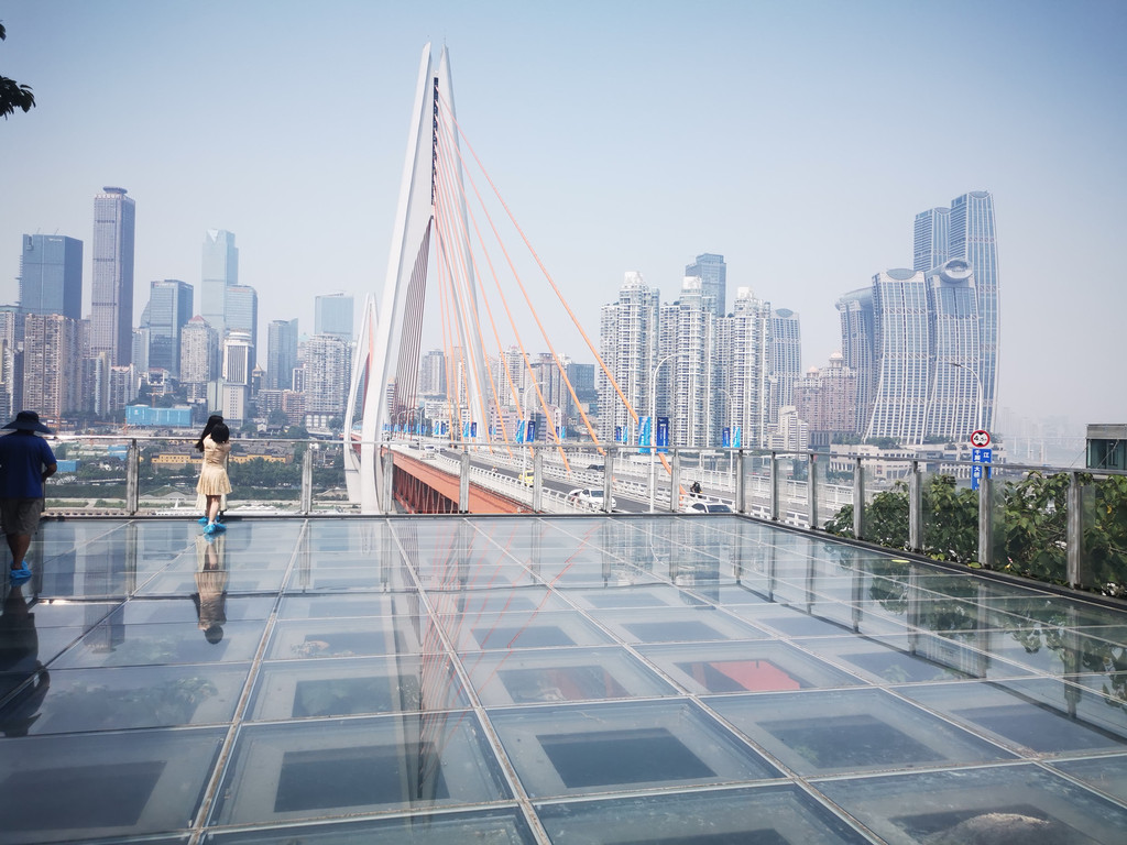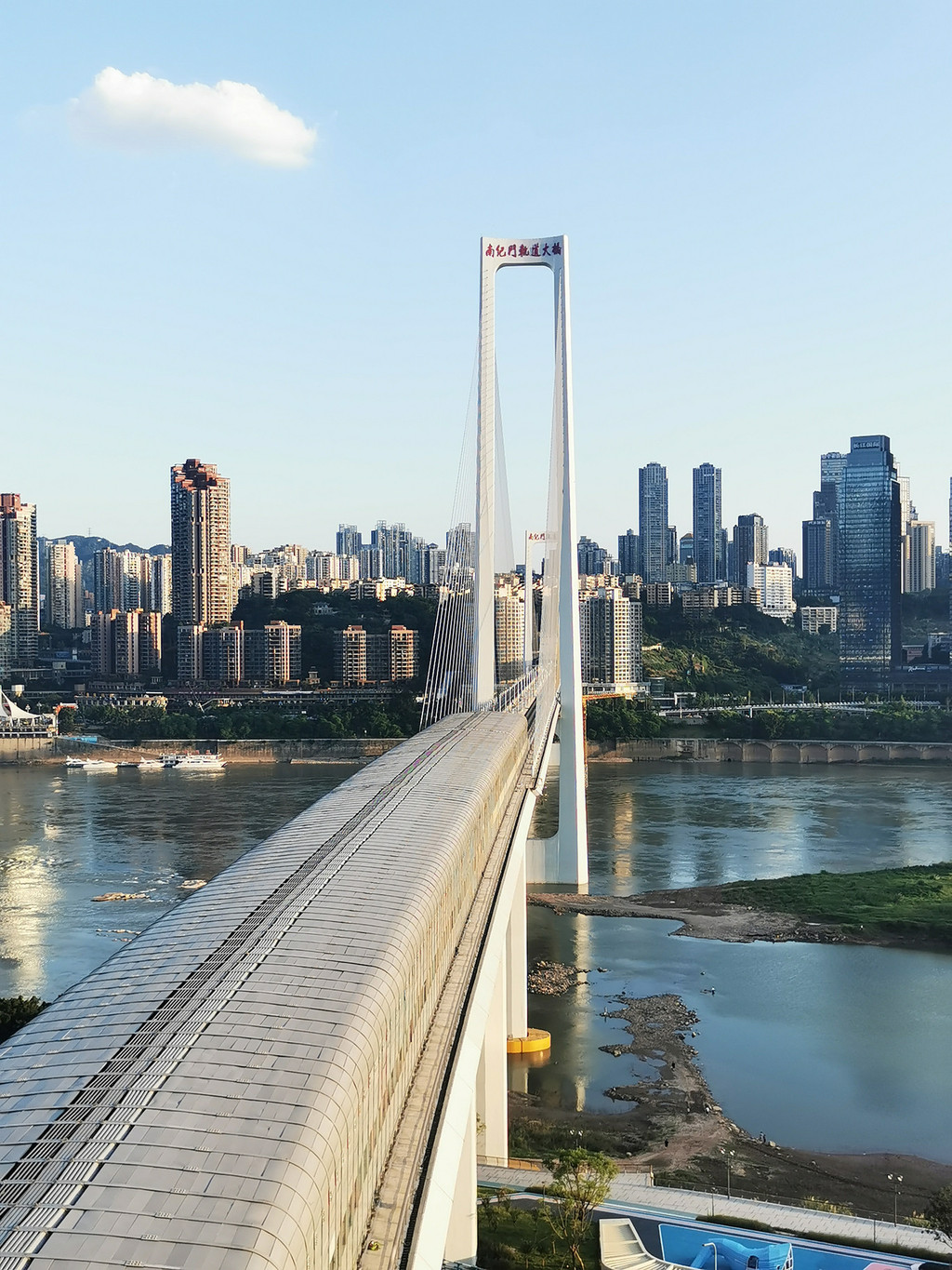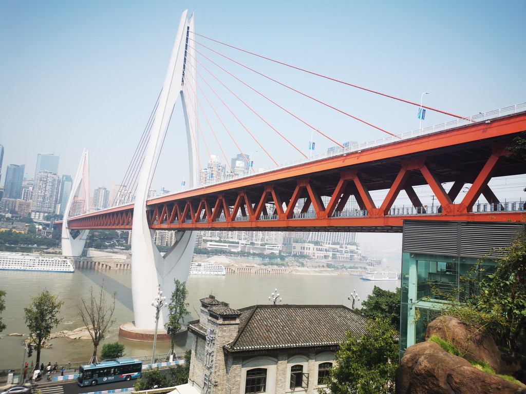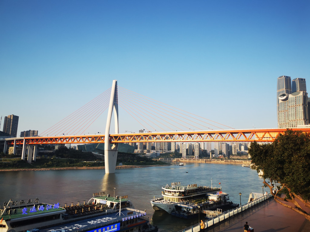 据说旁边的千厮门大桥是拍摄洪崖洞的最佳位置,我们特意走了半天上到桥上,拍了几张照片。
