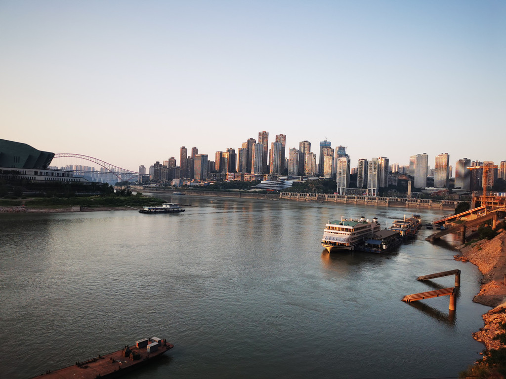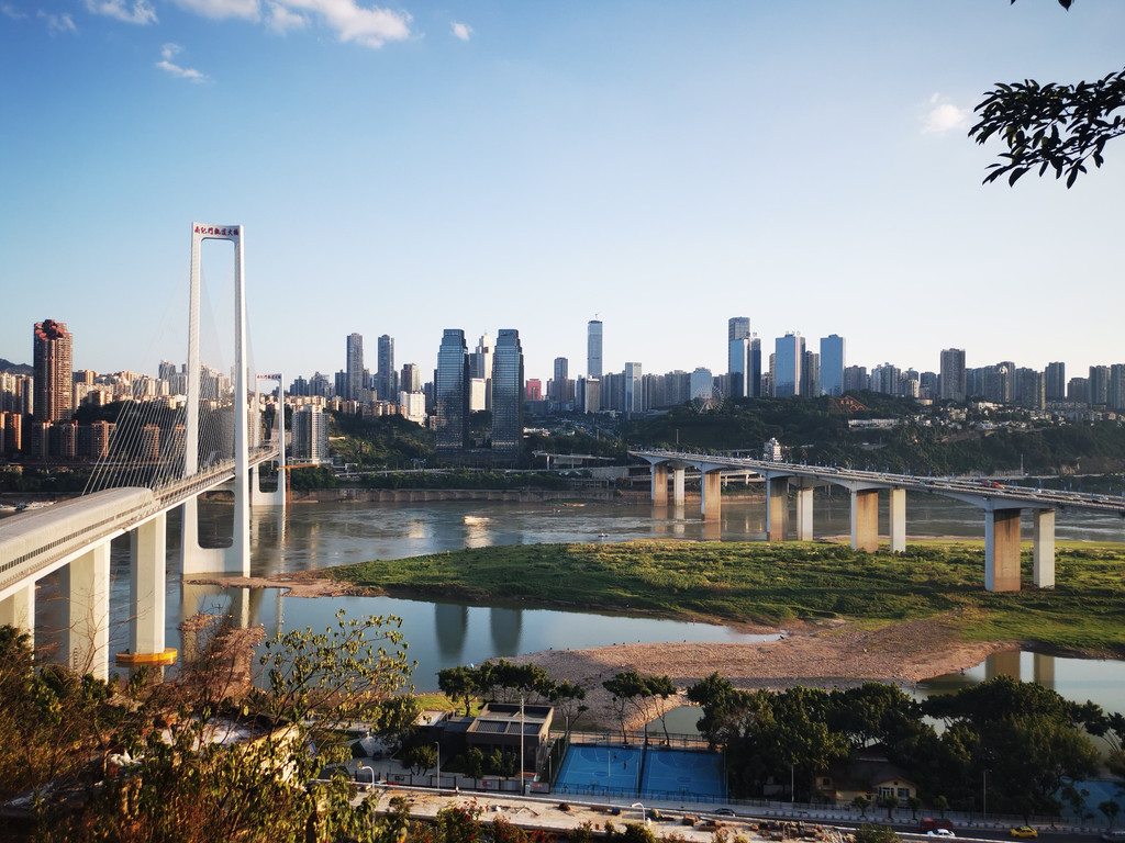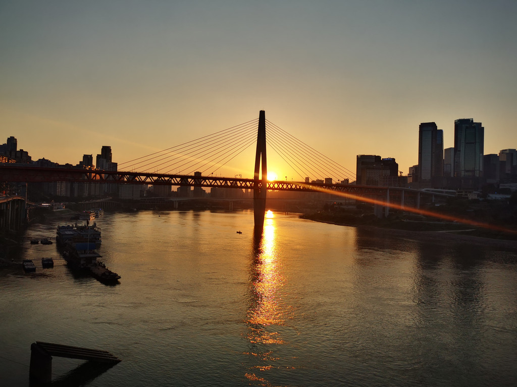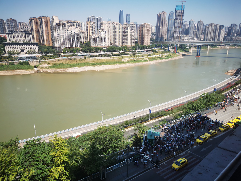 据说旁边的千厮门大桥是拍摄洪崖洞的最佳位置,我们特意走了半天上到桥上,拍了几张照片。