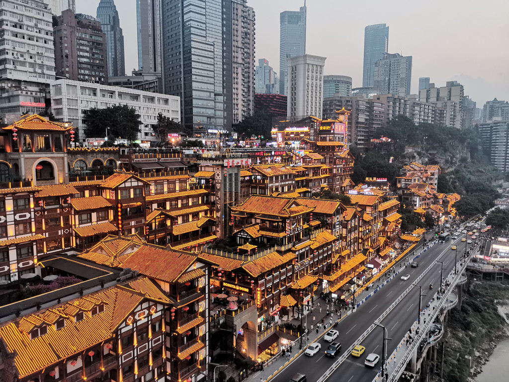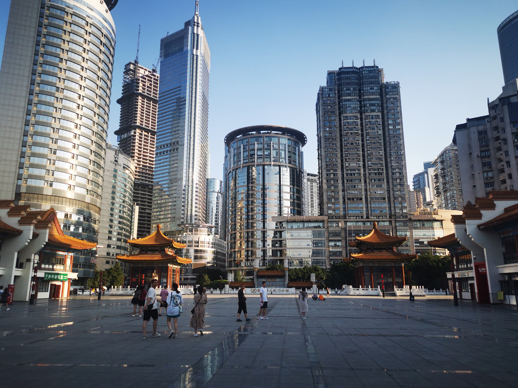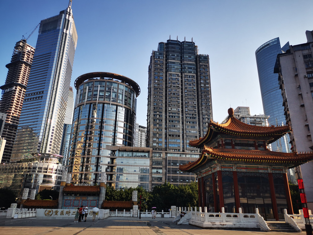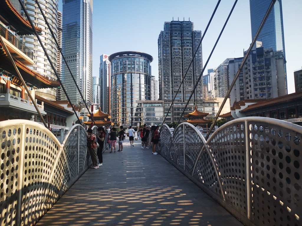 魁星楼。这里大概是最能体现重庆“8D魔都”的地方了,网友们戏说的“你站在22楼,却以为是在一楼”,指的就是这里了。我们从地面步行到这块像个大型广场的地方,广场四周的漂亮的传统建筑与其背后的现代化高楼大厦相映成趣。
