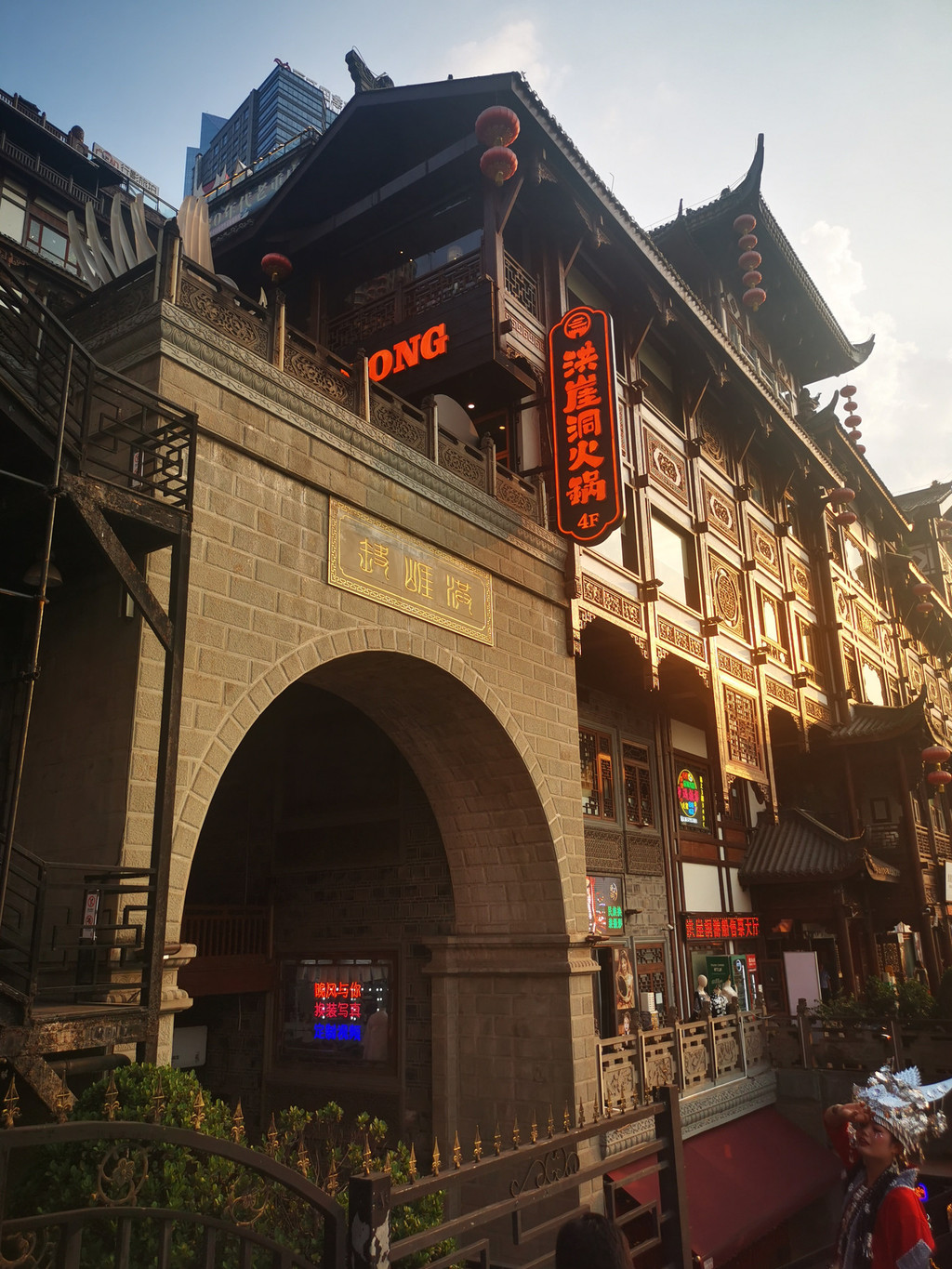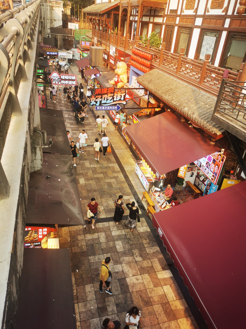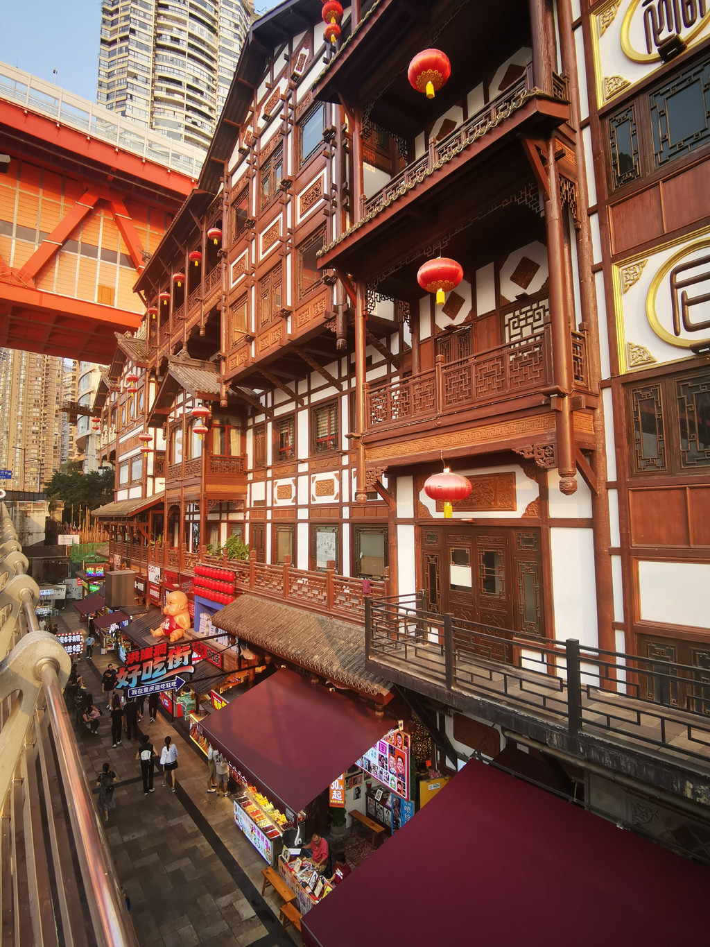 魁星楼。这里大概是最能体现重庆“8D魔都”的地方了,网友们戏说的“你站在22楼,却以为是在一楼”,指的就是这里了。我们从地面步行到这块像个大型广场的地方,广场四周的漂亮的传统建筑与其背后的现代化高楼大厦相映成趣。