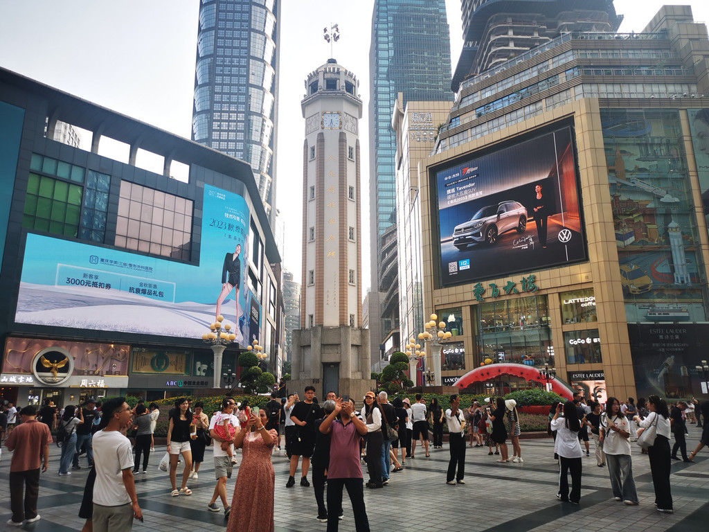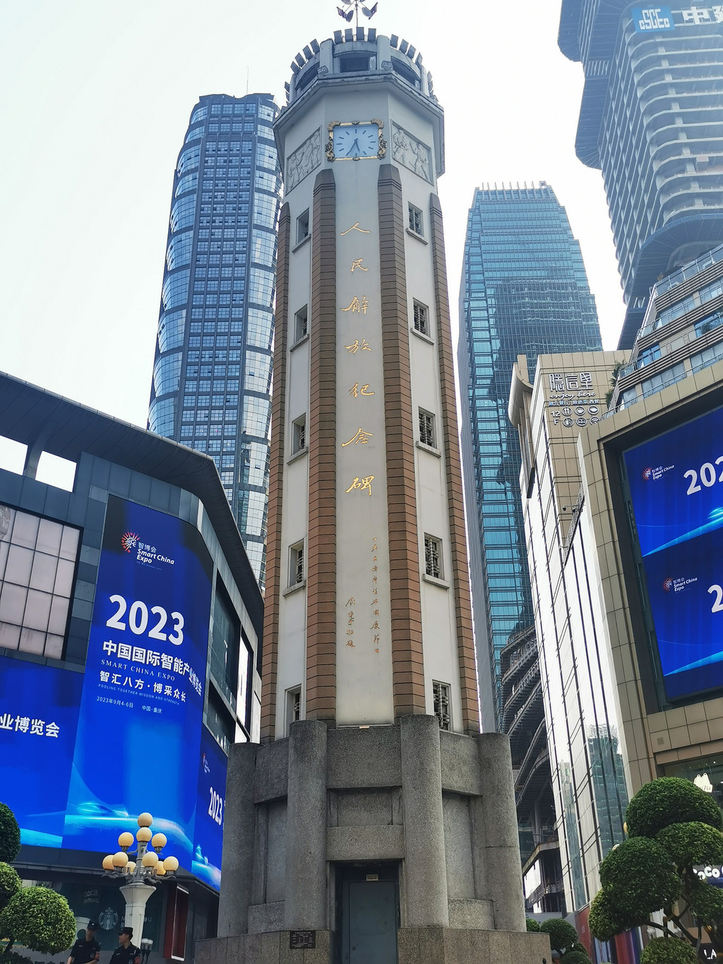 重庆第一站,打卡解放碑。到达重庆的当天下午,我们就去了离酒店不远处的解放碑步行街。解放碑全称为“人民解放纪念碑”,1941年建成,是中国唯一一座纪念中华民族抗日战争胜利的纪念碑,也是中国唯一一座纪念全中国人民解放的纪念碑。解放碑地处重庆最繁华的商业地段,是重庆最有名的地标建筑。