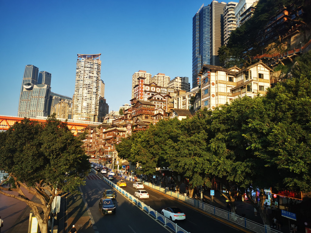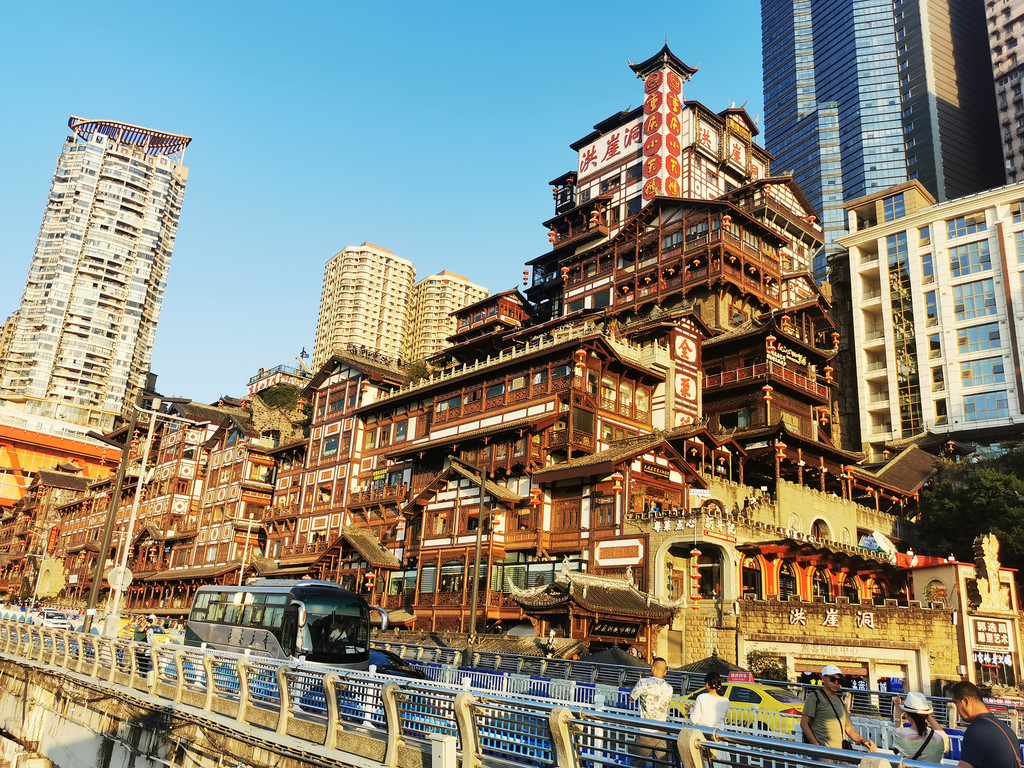 再往前走就是洪崖洞了。今天来到道路的另一侧,从不同的角度再次观赏了这个“重庆第一景”。