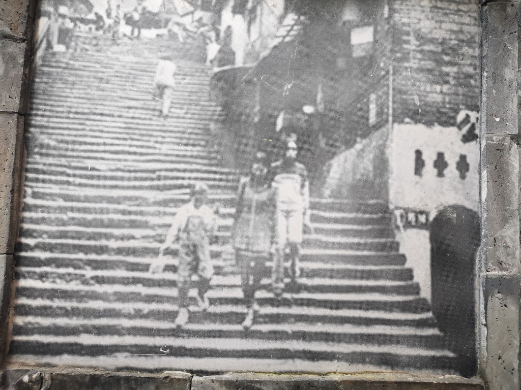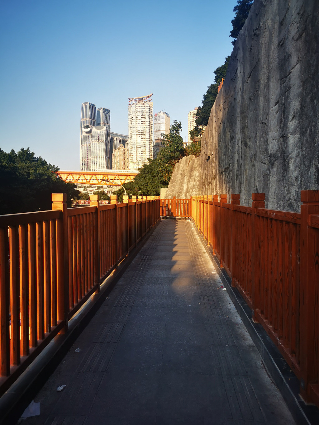 山城步道 — 其实就是一条蜿蜒在大街小巷里人行小道,与其它城市用于锻炼身体的健康步道不同,这个步道一路上顺着山势上坡下坎,真正体现了山城的特点,走在其中,倒也别有一番风味。