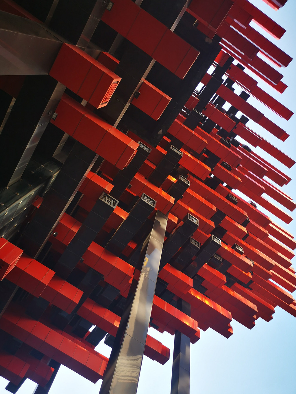 那日来国泰艺术中心(筷子楼)时,竟然连它的大门都没有找到,今天一早再次来到这里,费了好大劲儿,围着这块地方饶了两圈,才发现其实正门这边还壮观的,只是入口没有指示牌,很容易错过。