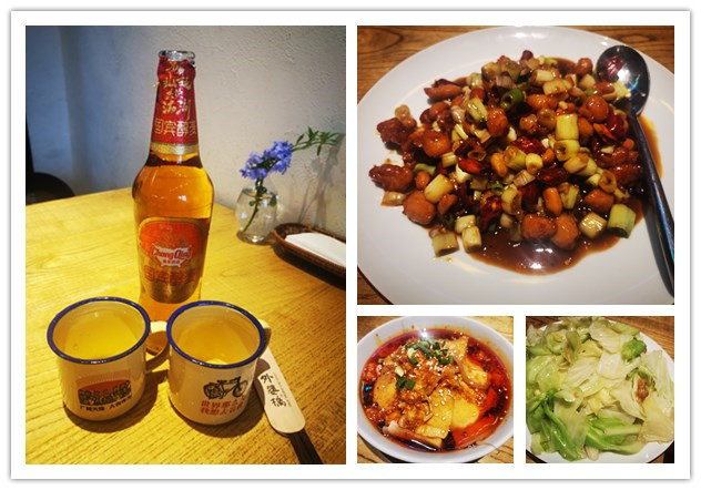 路过这家外婆桥川味食堂,正是饭点,就在他家吃了。一个宫保鸡丁、一个蒜泥白肉、一个包菜,一瓶重庆产啤酒,真真是家常菜的味道。