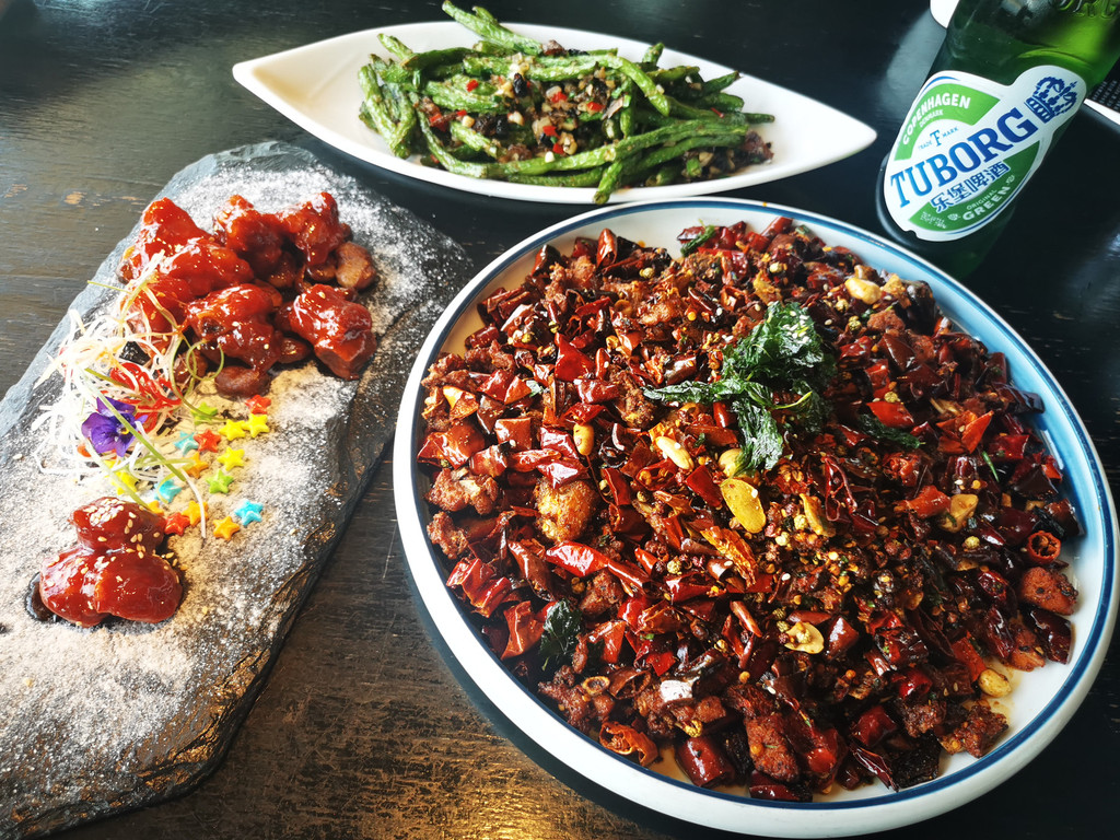 因为我们的第一顿目标是正宗川菜,所以到附近的老四川吃了一顿,又油又辣的川菜,还是有点顶不住啊。