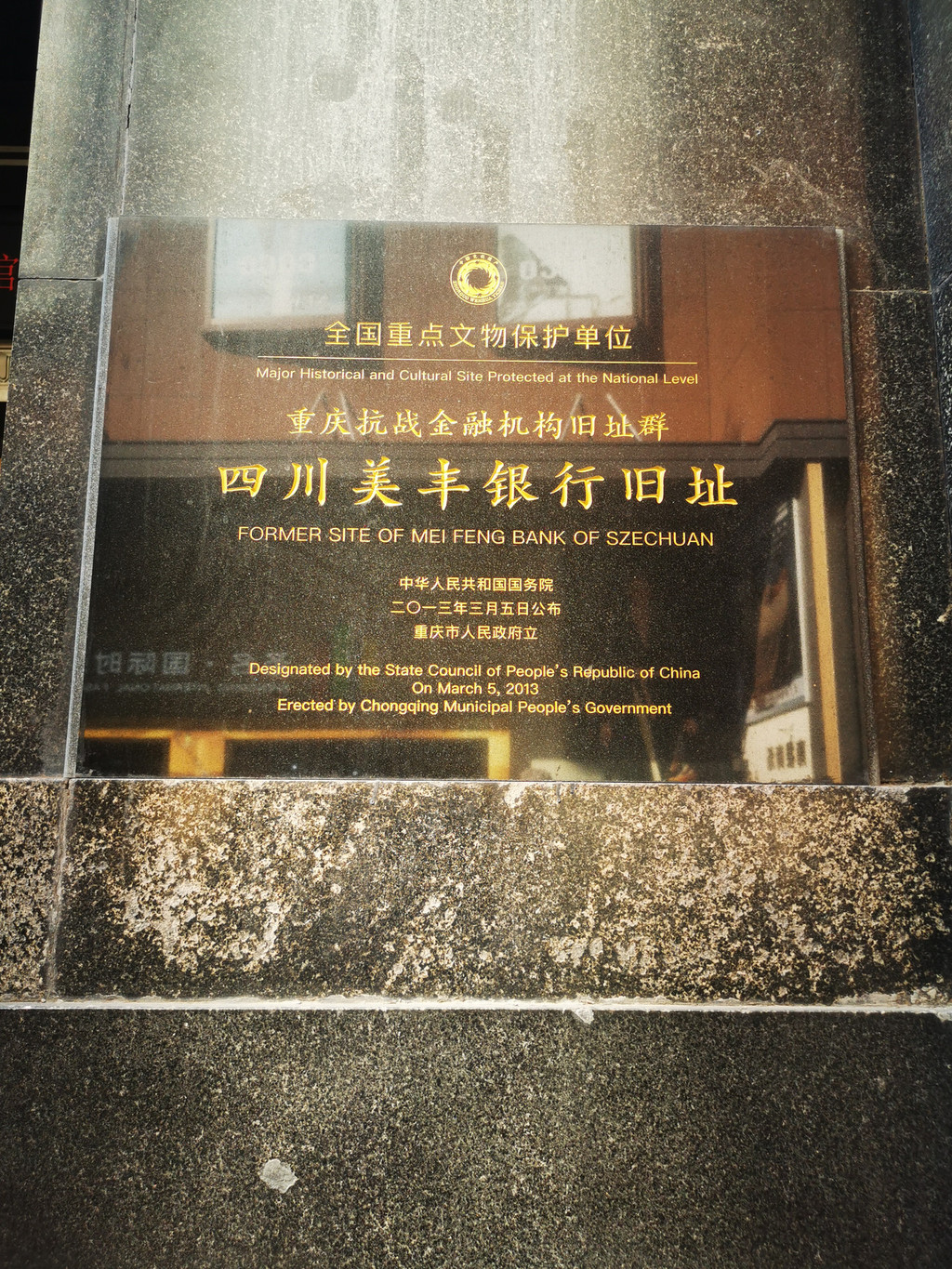 酒店对面的金融博物馆。这里原是四川美丰银行旧址,酒店保安介绍说,当年蒋介石宋美龄就是在这座楼里远观解放碑的。