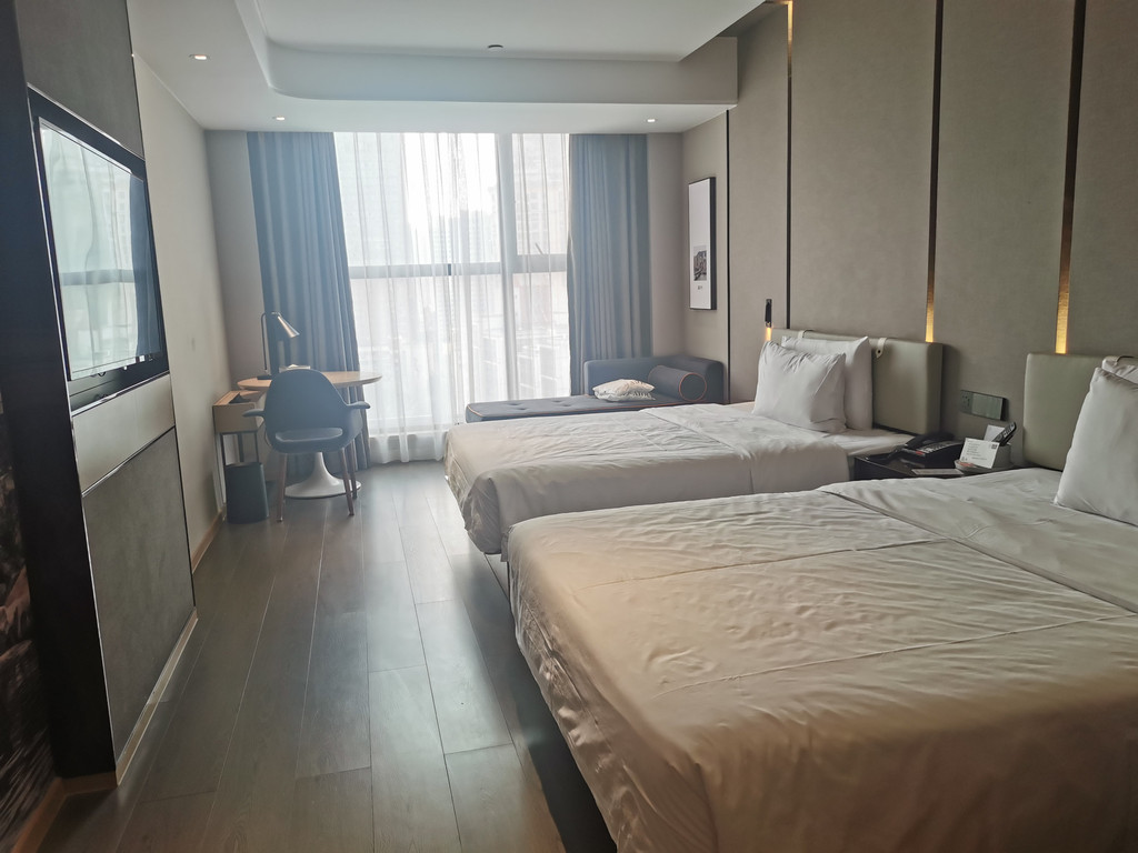 按照惯例,首先要说说我们在重庆的住宿。出发前,在重庆的几家亚朵酒店之间纠结了半天,最后选择了位于渝中区的重庆解放碑来福士广场江景亚朵酒店,事实证明,真是一个明智的选择,原本预订了三晚,感觉不错又续订了两晚。亚朵酒店的品质就不用多说了,反正我们到许多城市旅游都是选择亚朵的,关键是这家亚朵的位置实在是太好了,去解放碑、来福士广场、长江索道北站、筷子楼、魁星楼等景点皆步行可达,而且酒店离地铁站仅有二三百米,出门游玩无论是步行、打车还是坐地铁都方便得很。对了,他家早餐的重庆小面好好吃,主要是哨子给力,有肉沫和牛腩等,我们平时喜欢吃偏西式早餐的,居然在他家连吃了五天的小面。他家的网速特快,好用。小冰箱里有饮料、瓶装水、小点心,全部都可免费食用,总之住得很满意!