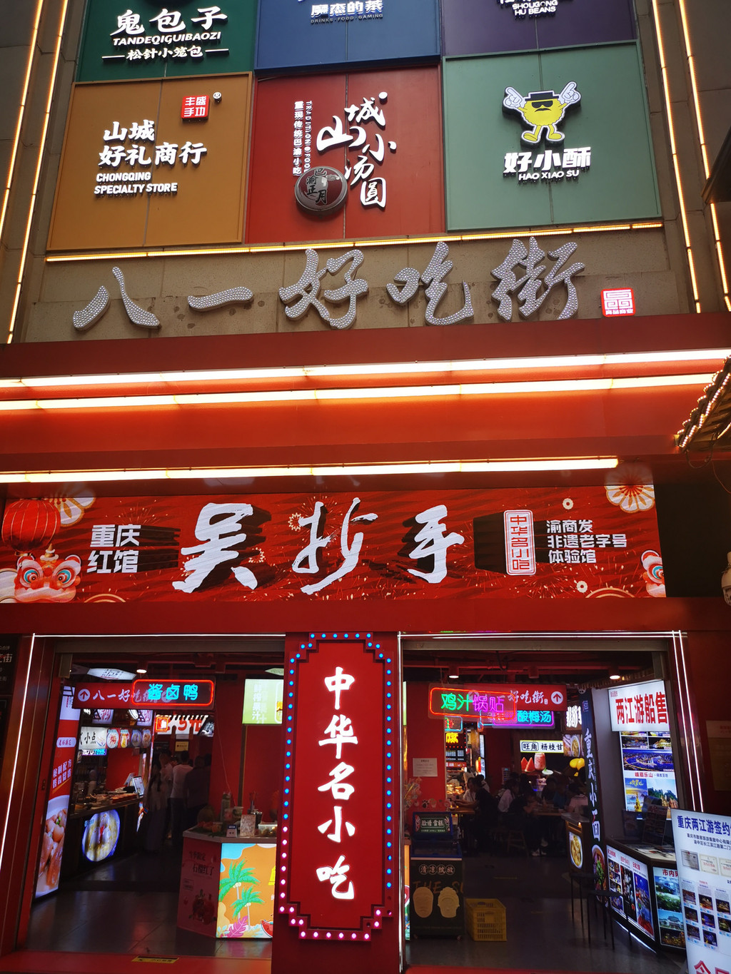 坐落在解放碑步行街上的八一好吃街真是让我们大开眼界,都说长沙是小吃之都,却原来真正的小吃之都在重庆,小吃街不仅规模庞大,小吃种类也多得让人眼花缭乱。