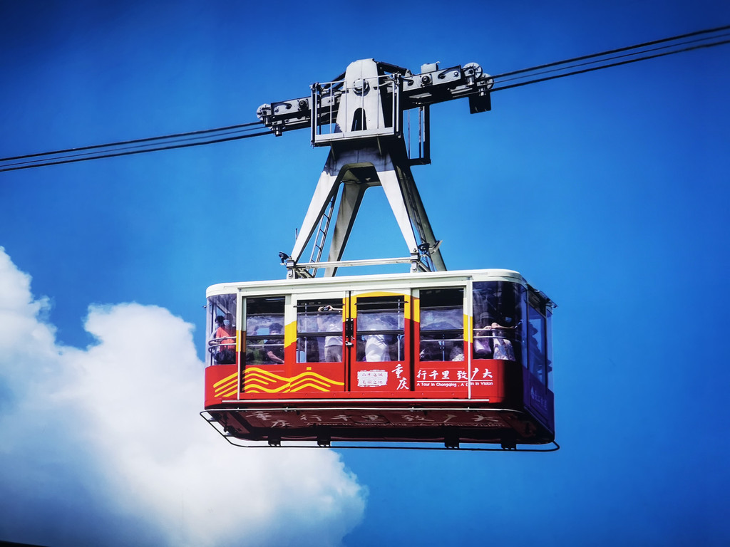 重庆长江索道。对当地人来说只是一个2元/人次的日常交通工具,如今却已经成为一个热门景点。单程票价20元/人,往返票价30元/人。我们上午十点左右到达索道北站时,已是人头涌涌,很是热闹,放眼望去,基本都是团队游客,各种旅行社的小旗子迎风招展,十分抢眼。排队几十分钟,过江三四分钟,总算到了长江南岸。我们原本买了双程票,但是想想回程还要再排队等半天,就干脆放弃了,改为乘坐一站地铁回到酒店。