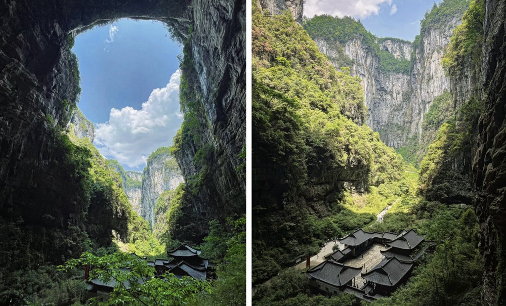 ⬆️ 武隆天坑地缝:充满神奇和壮丽景观的天然奇观。同时也是电影《变形金刚》和《满城尽带黄金甲》的拍摄背景。