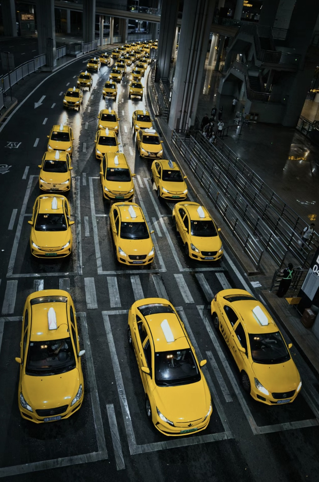 ⬇️踏出机场,我的目光立刻被那一排鲜明的黄色出租车吸引。