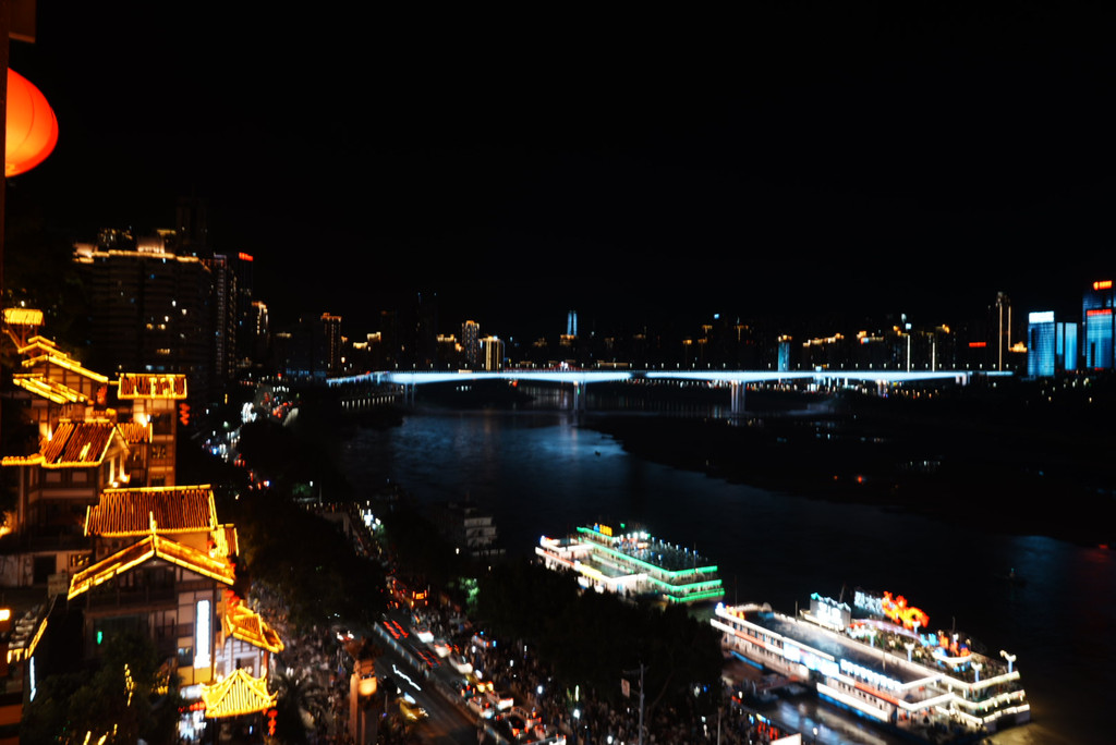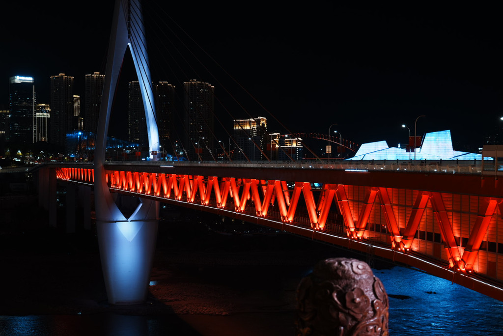 ⬇️这座立体的山城,不仅有着缤纷的霓虹夜景,还有一座座宏伟的大桥,其中千厮门大桥就如一颗璀璨明珠,横跨在江水之上,连接着南北两岸。