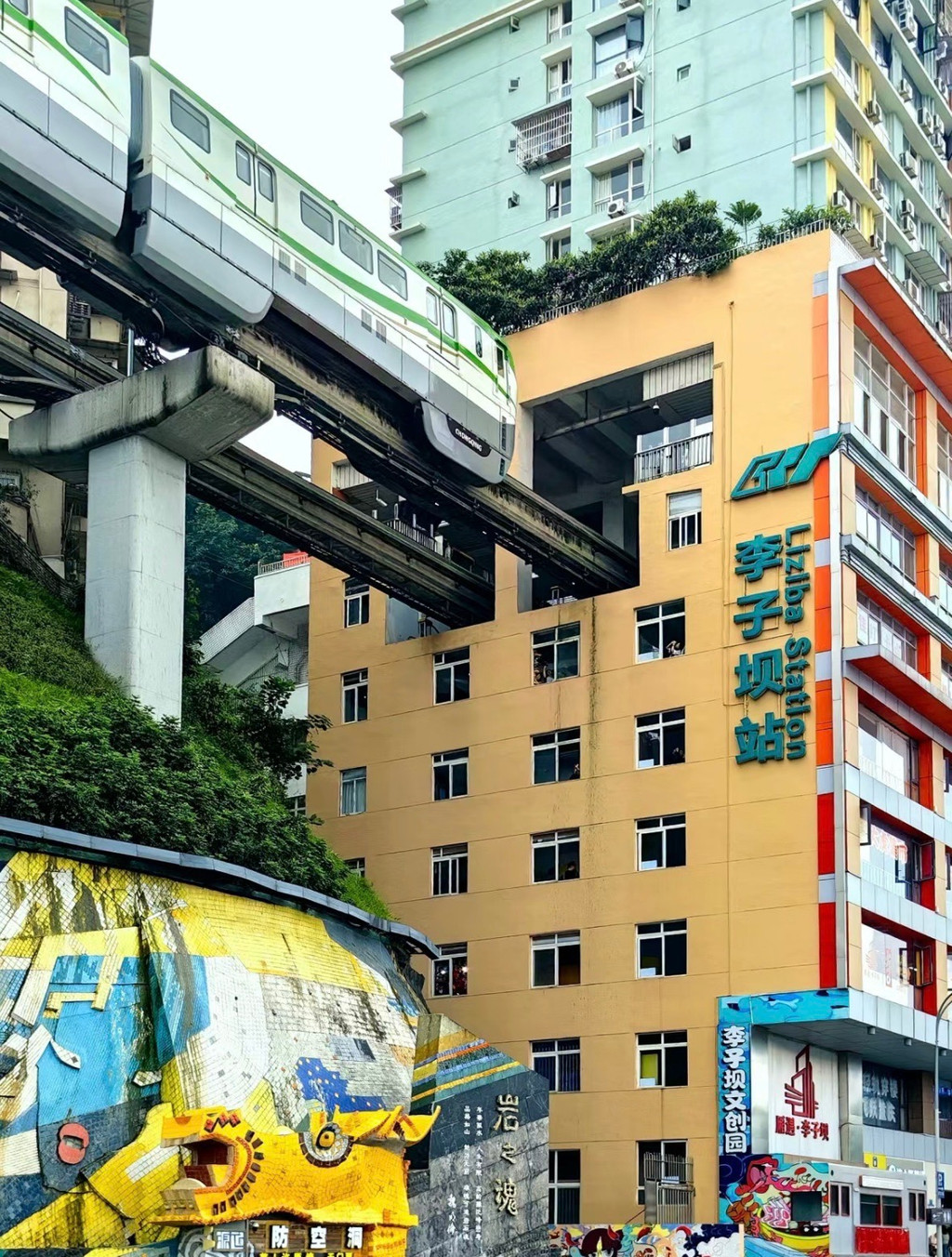 2️⃣在重庆,有一个绝无仅有的景点——李子坝。这段轻轨线路不走寻常路,而是勇敢地穿越了高楼大厦的中心,勾勒出一道城市的魔法通道。
