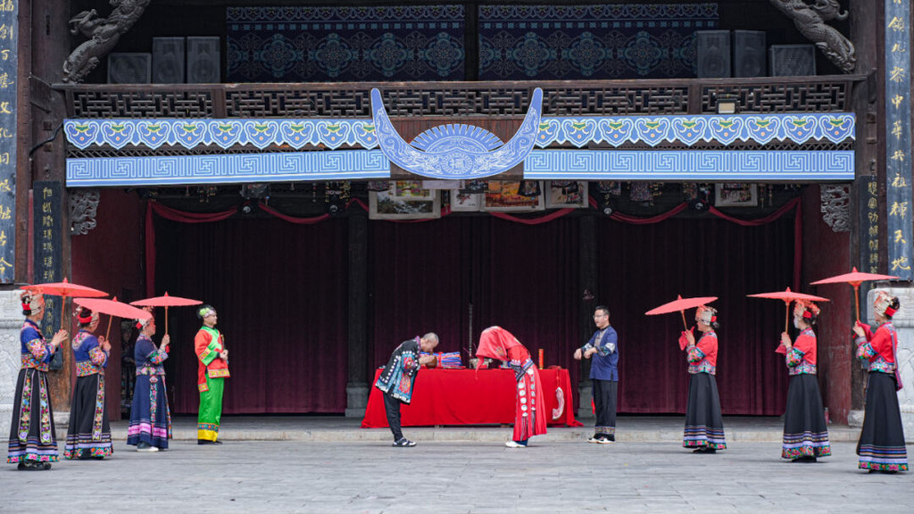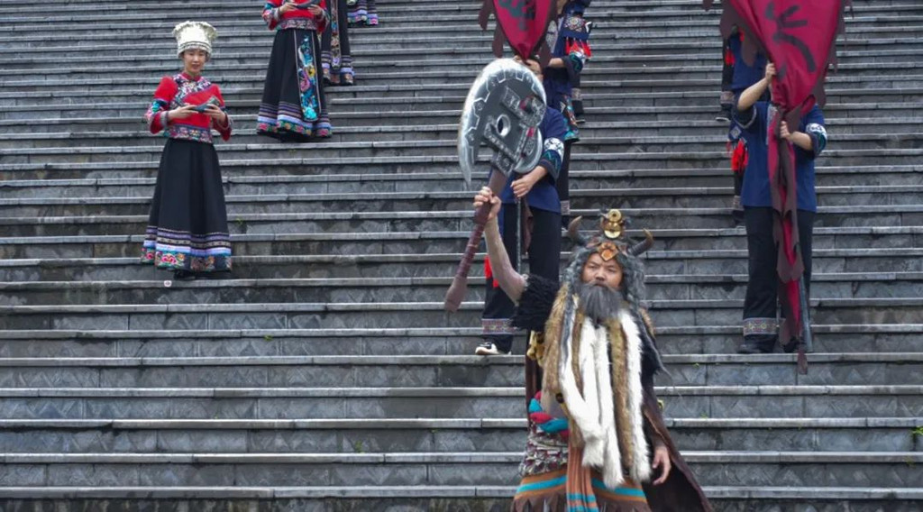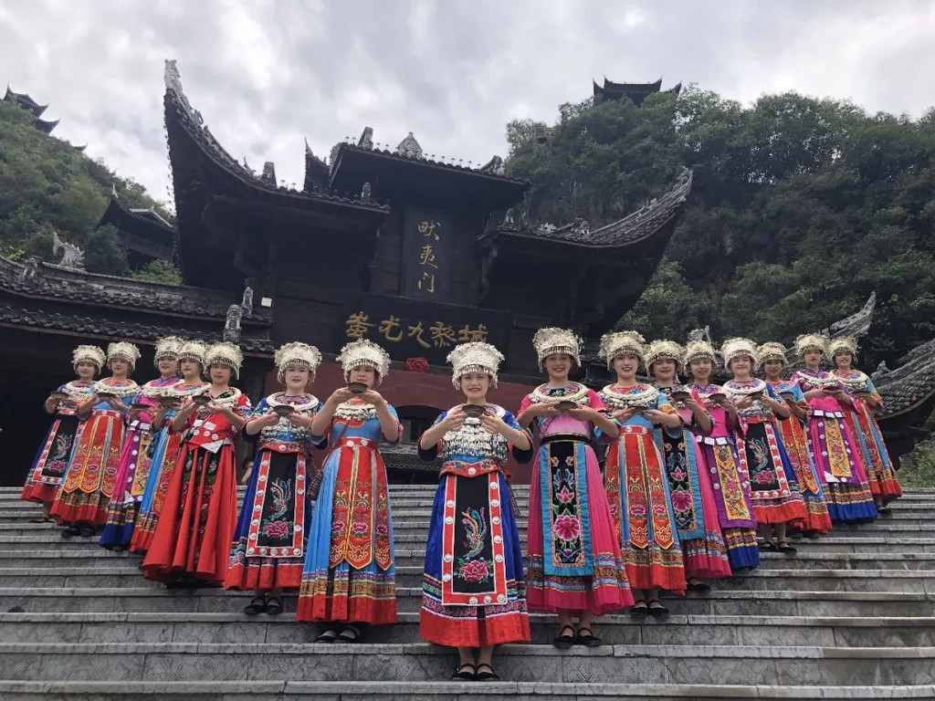 第三章:苗族文化体验在九黎城,我有幸体验了苗族的传统文化。一进城门,便是这仪式感慢慢的开城门仪式!