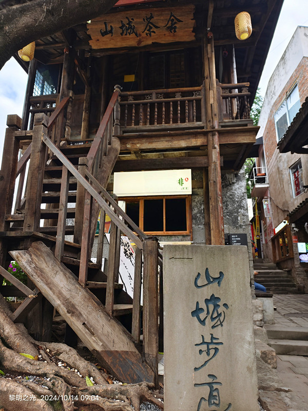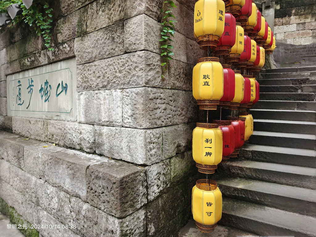 早上7:30左右起床,吃过早餐,约8:30左右从住地出发,约十多分钟到达山城步道中兴路入口。山城步道,依山就势,联通重庆上下半城,内有蜿蜒石梯、沿江栈道、吊脚楼群,是更重庆更烟火的一条古街区。