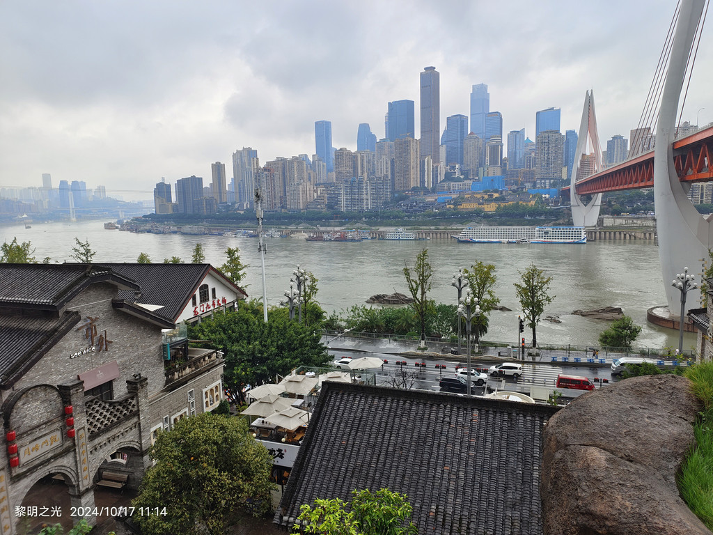 站在老街的观景台,放眼望去,长江与东水门大桥交相辉映,江面上过往船只缓缓驶过,微风夹杂小雨,湿漉漉,凉飕飕,满满都是惬意。小雨时停时下,丝毫阻挡不了我们欣赏美景、了解历史、悠闲散步、选景拍照的热情。