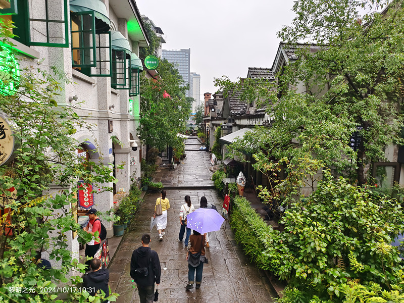 8:00左右起床,吃了楼下购买的煎鸡蛋和面包,9:30左右,坐公交逛龙门浩老街。走进龙门浩,感觉穿越来到了古老的时光,像走进了一幅充满历史韵味的水墨画里,古老的建筑物错落有致,小雨中的青石板路朦朦胧胧,蜿蜒曲折。巴渝风格的古老吊脚楼,仿佛在诉说着这里昔日的繁华与沧桑。