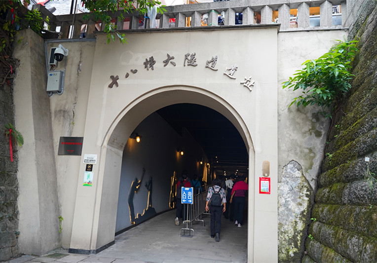 在“十八梯大隧道遗址”,我们通过图文、影视频、声光电、实物了解了1941年震惊中外的“较场口”大惨案,也了解了重庆人民在抗战时期“跑警报”、“躲隧道”的艰难岁月和在“防空洞”里的生产、生活场景,感悟了重庆“愈炸愈强”的城市精神。